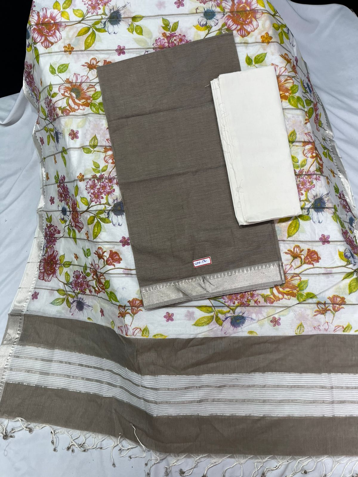 Mangalagiri Cotton Dress Material with White Chunni with Gray Colour