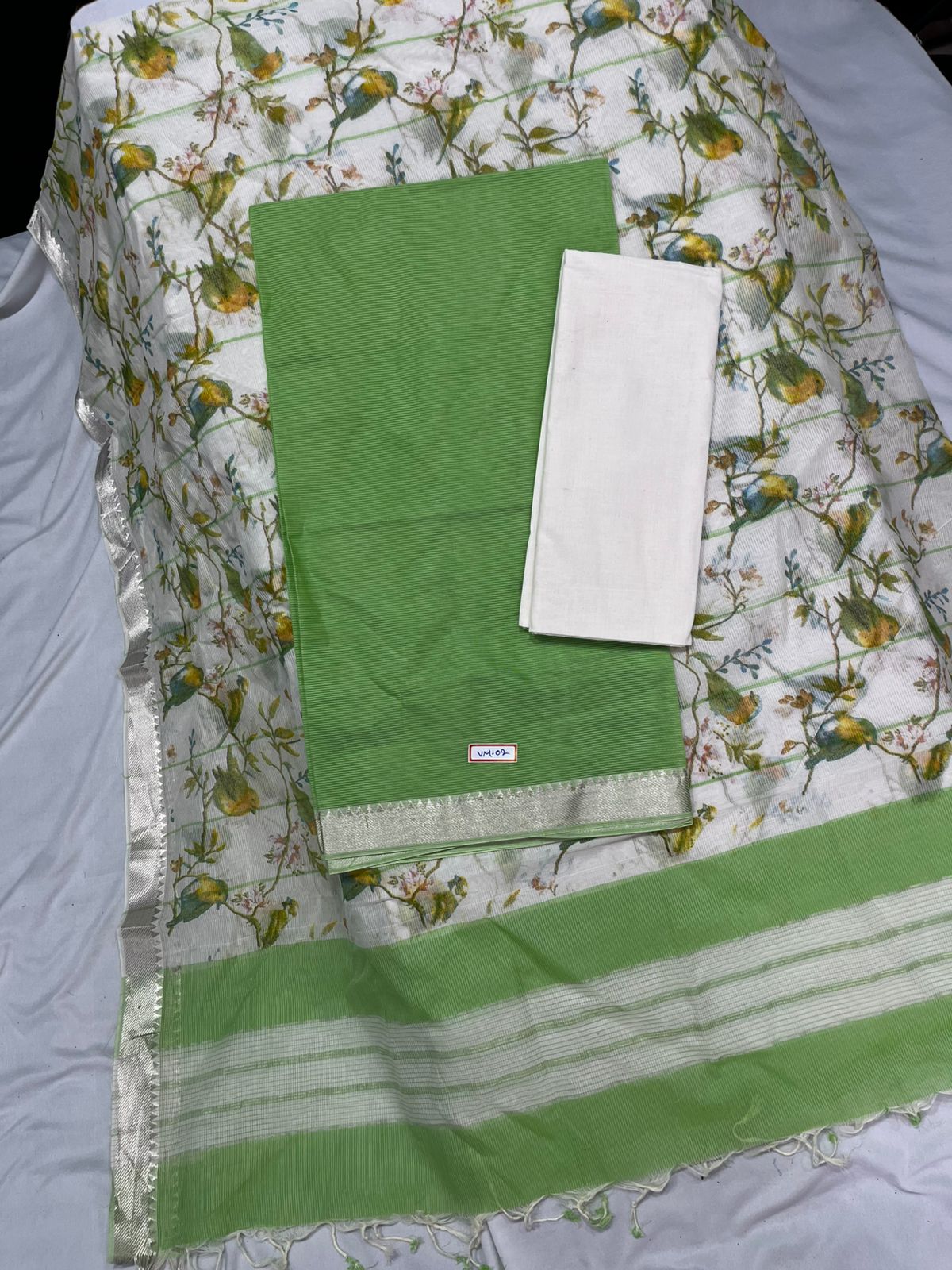Mangalagiri Cotton Dress Material with White Chunni with Green Colour