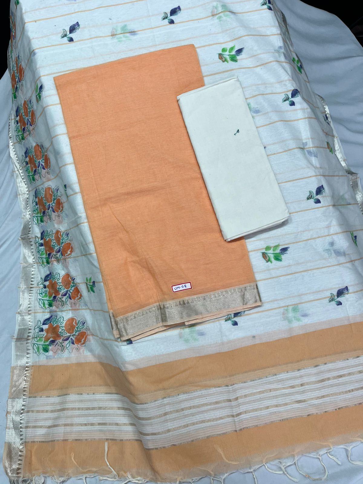 Mangalagiri Cotton Dress Material with White Chunni with Light Orange Colour