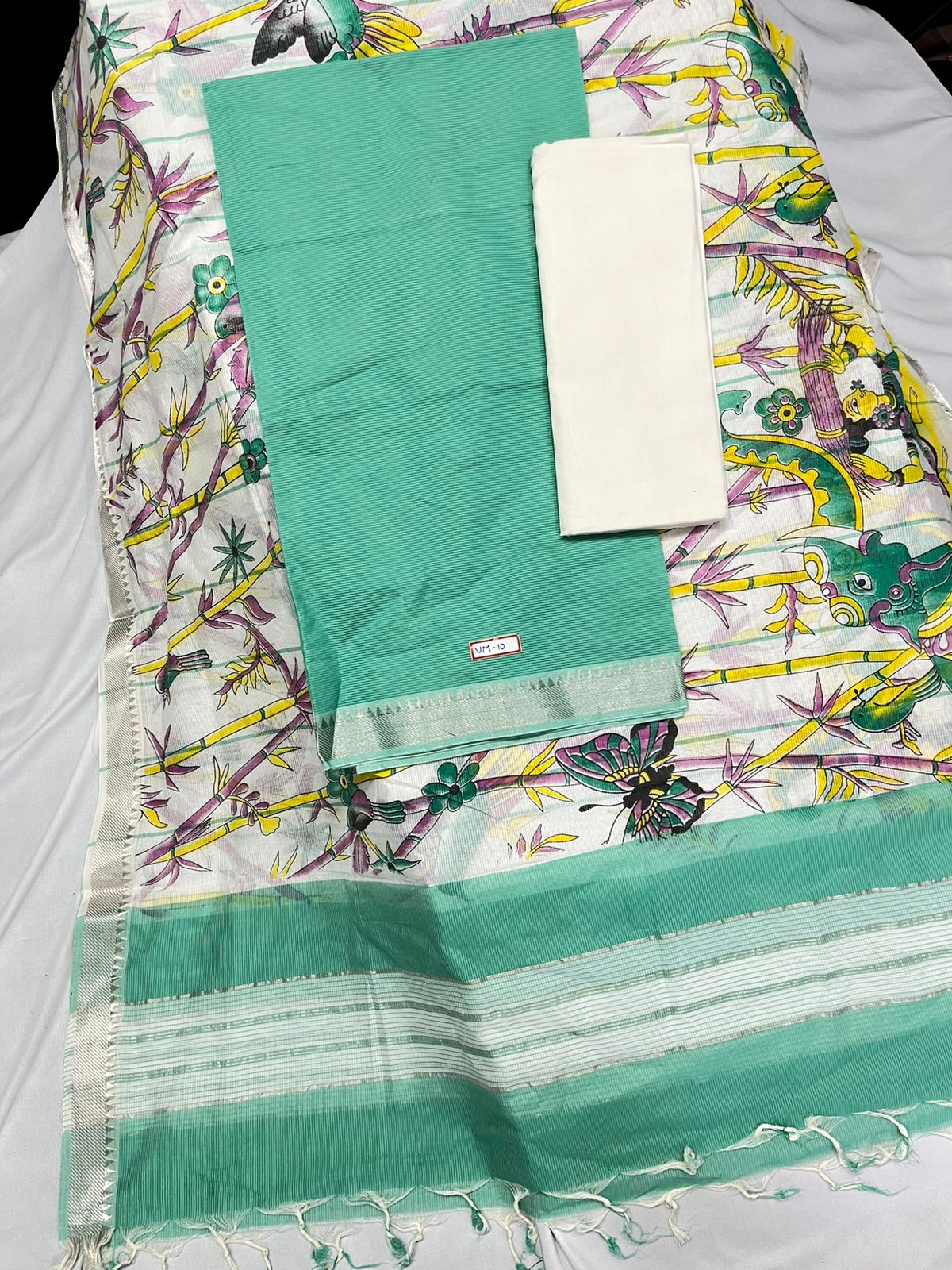 Mangalagiri Cotton Dress Material with White Chunni with Lux Green Colour