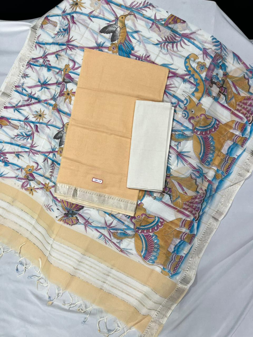 Mangalagiri Cotton Dress Material with White Chunni with Peach Colour