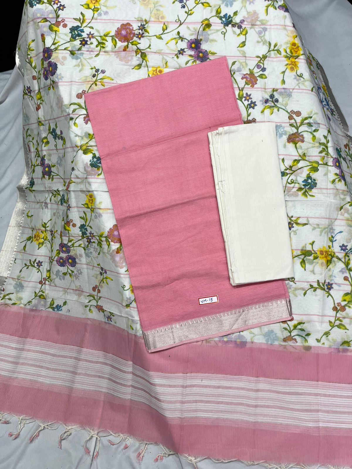 Mangalagiri Cotton Dress Material with White Chunni with Pink Colour