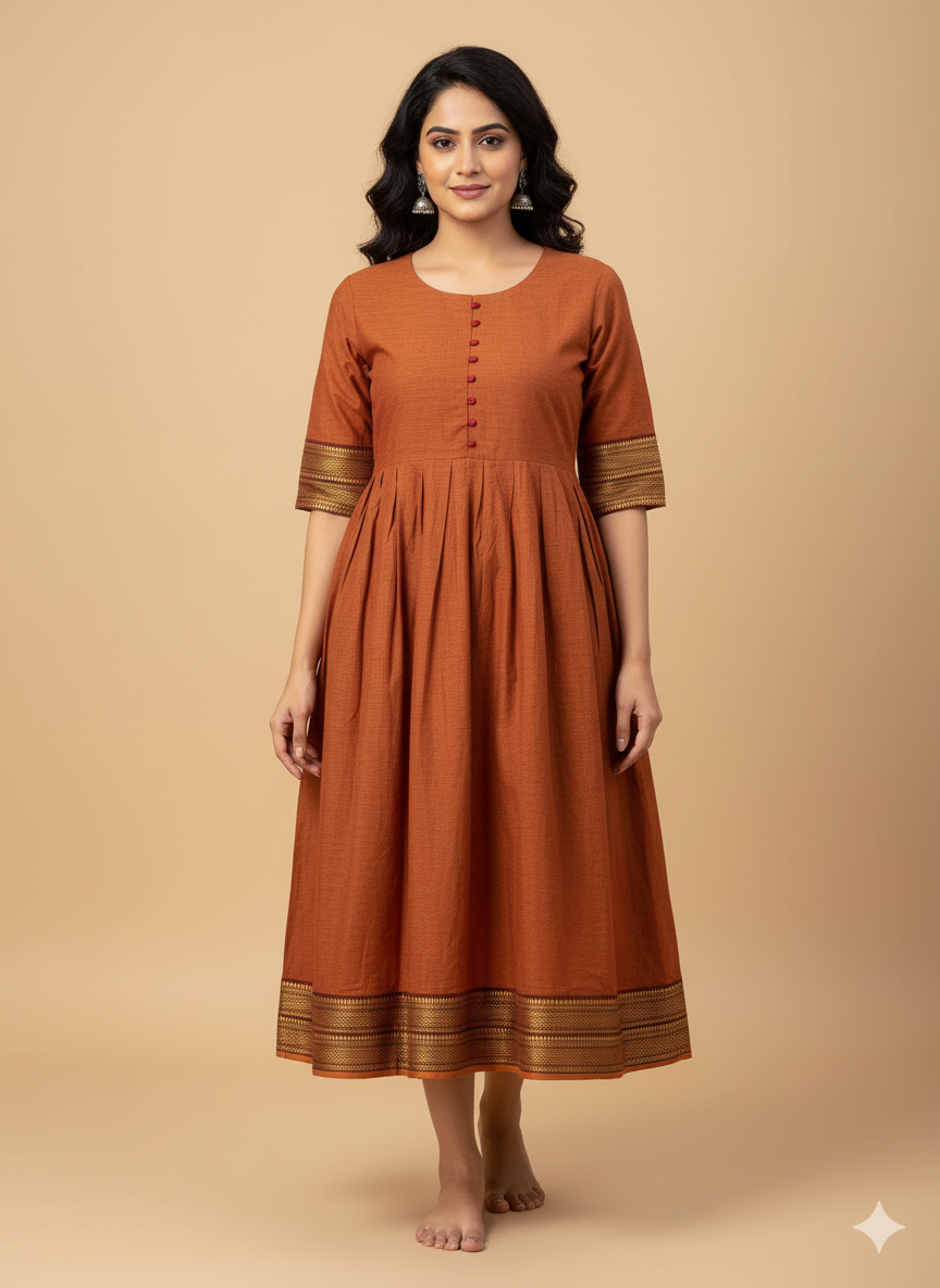 Mangalagiri Cotton Long Frock with Dark Brown Colour