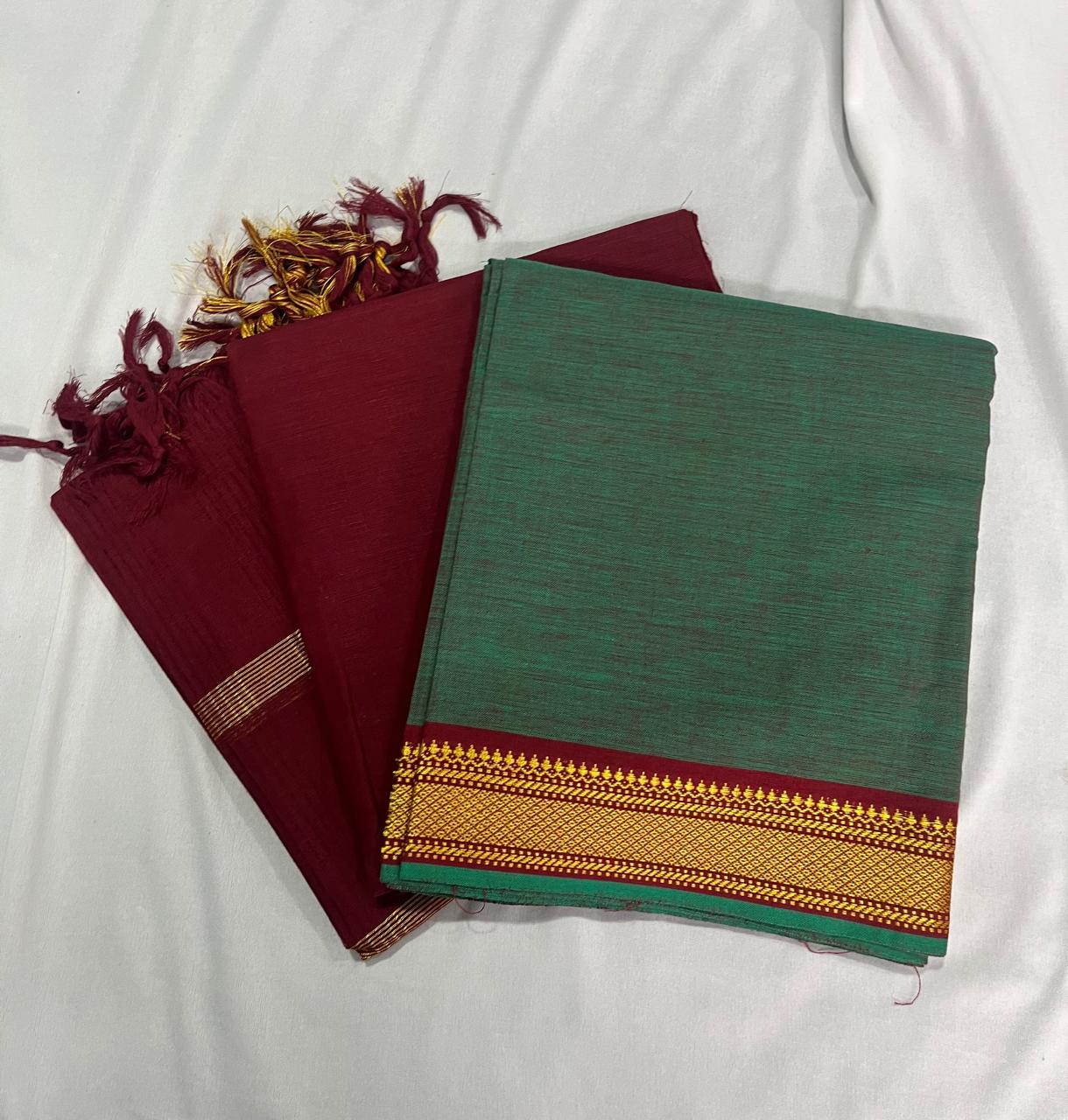 - Made from authentic Mangalagiri cotton fabric with elegant thread border detailing.