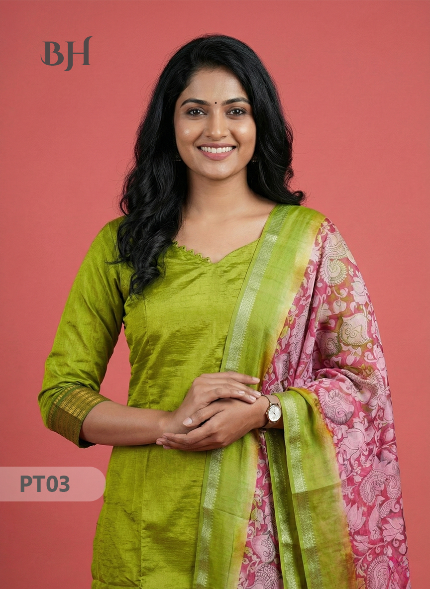 Bhavana Originals • Semi Pattu Top with Full-Length Lining & Matching Dupatta