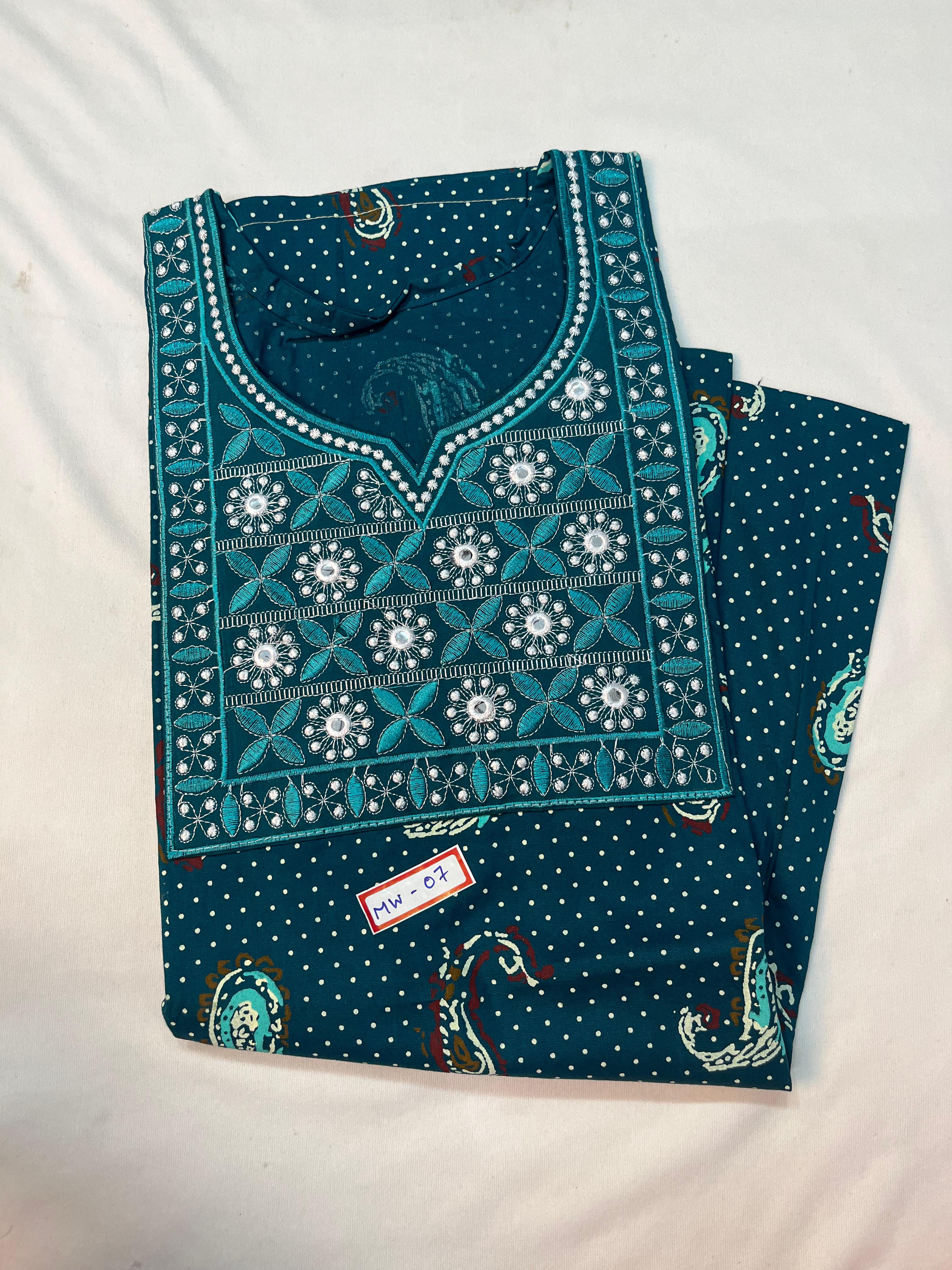 Mirror Finish Cotton Nighty with Free Style Size Blue Colour