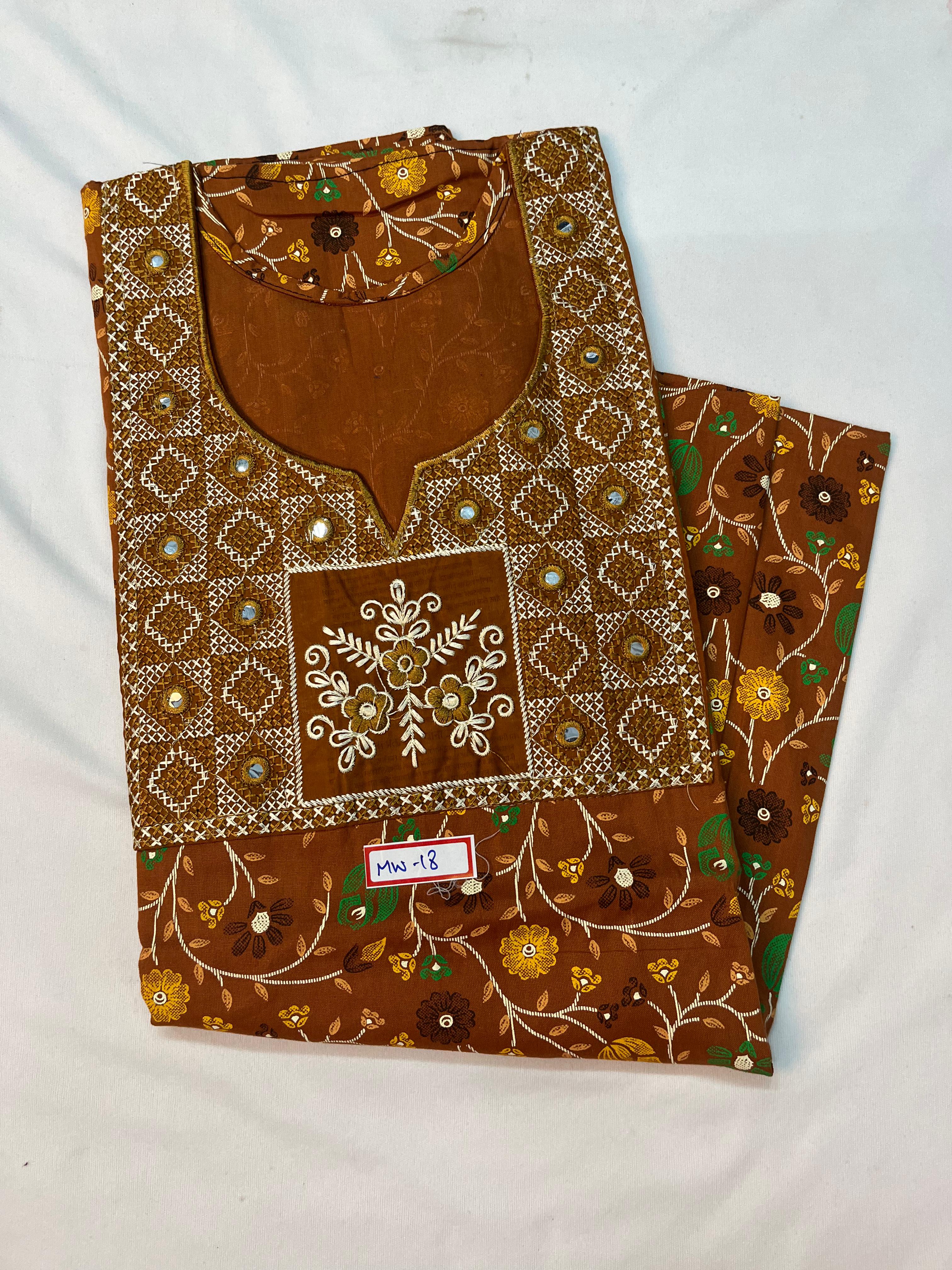 Mirror Finish Cotton Nighty with Free Style Size Brown Colour
