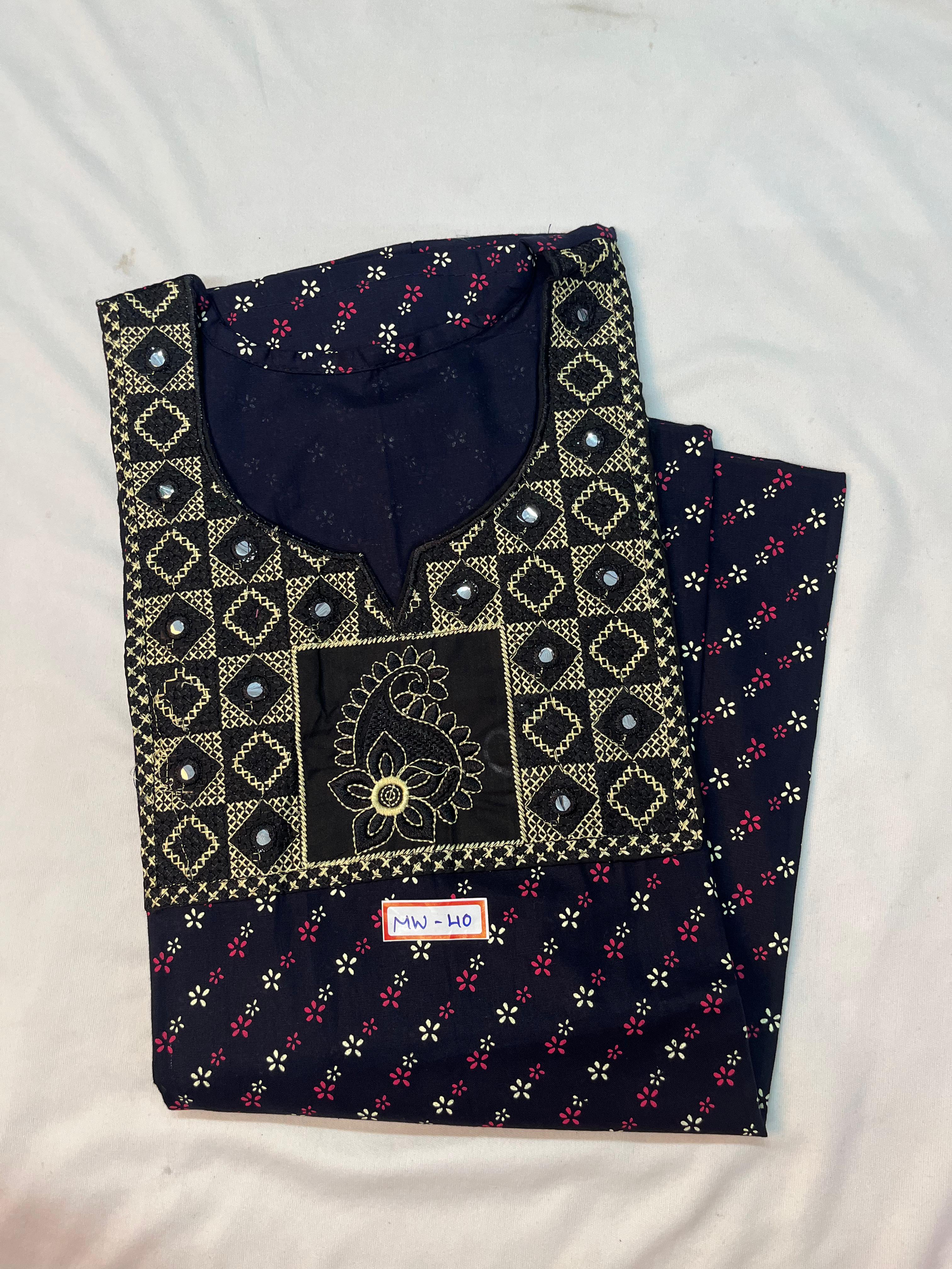 Mirror Finish Cotton Nighty with Free Style Size Dark Blue Colour