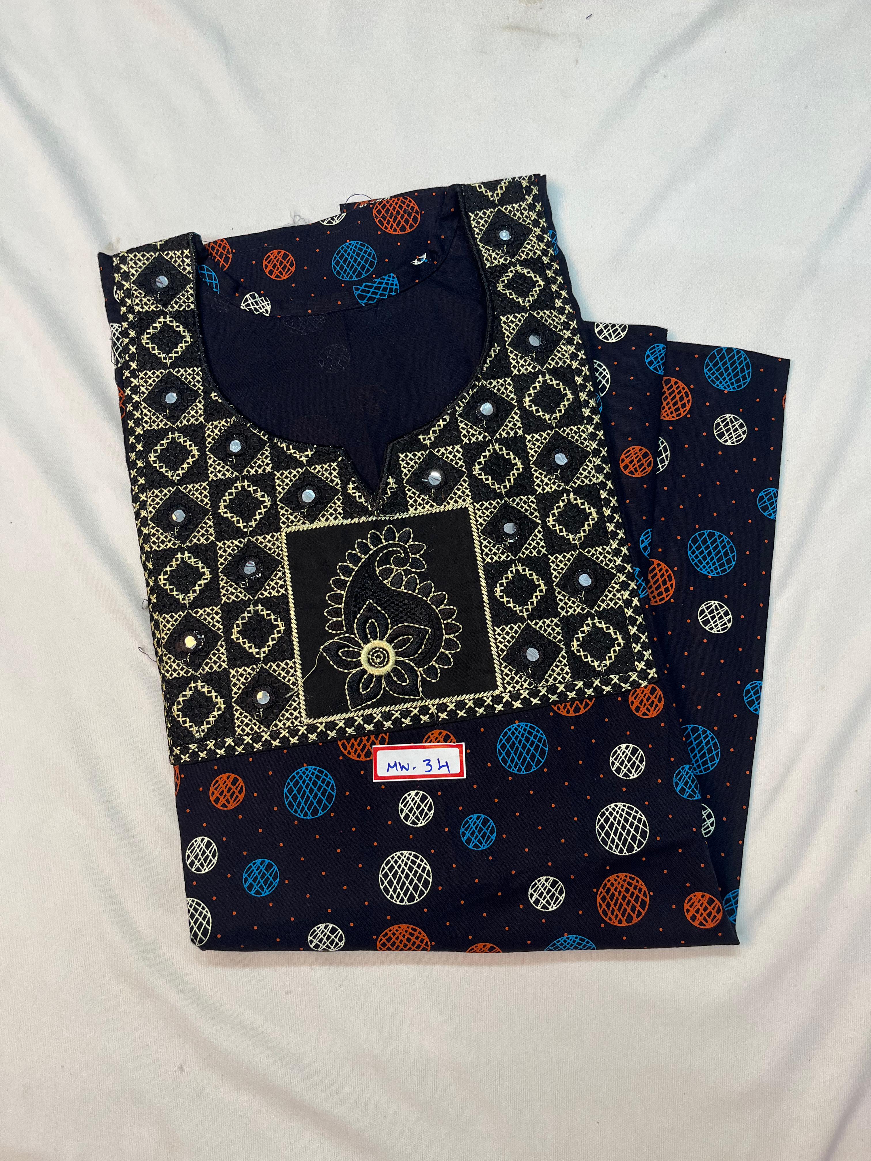 Mirror Finish Cotton Nighty with Free Style Size Dark Blue Colour