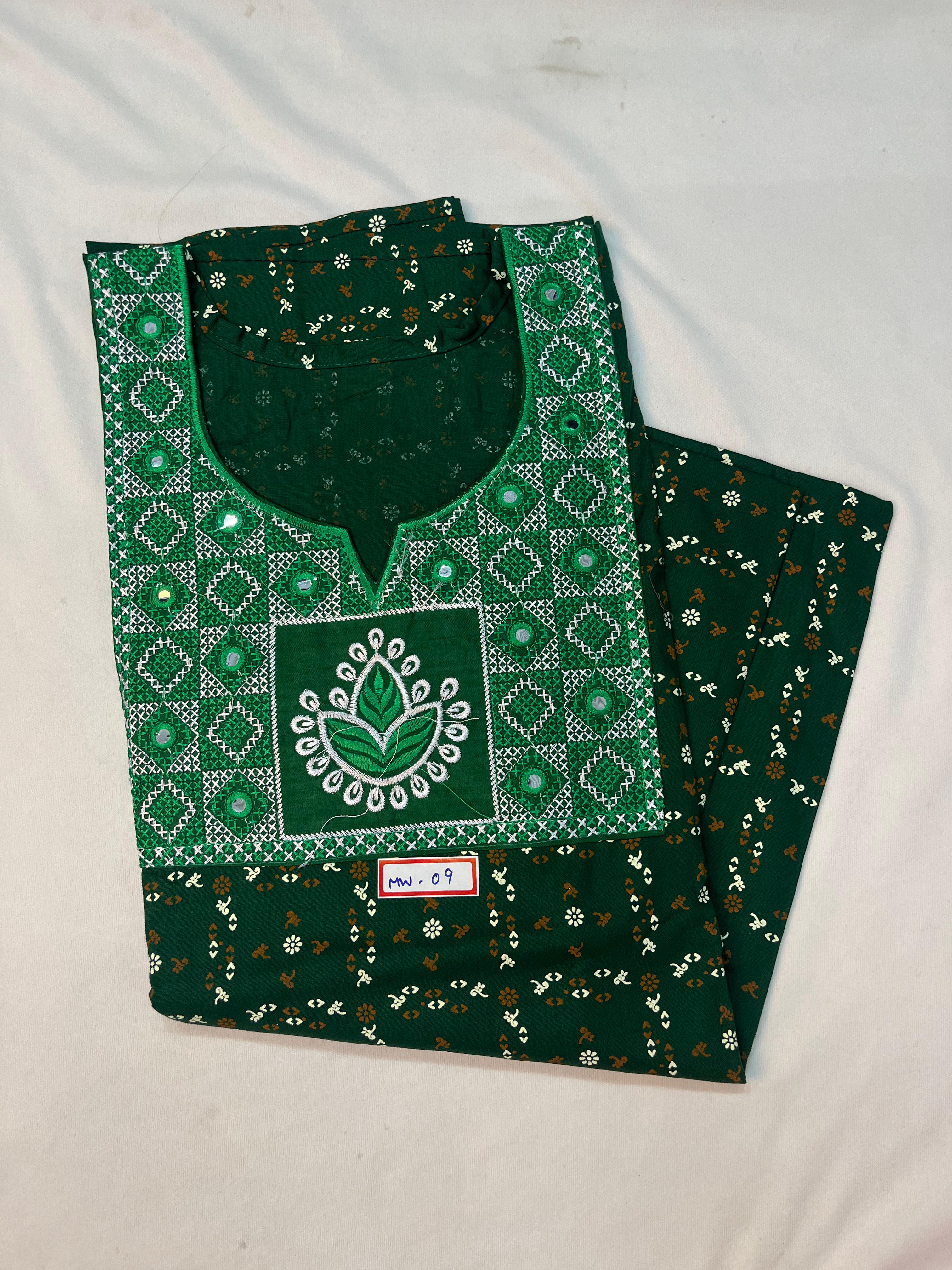 Mirror Finish Cotton Nighty with Free Style Size Green Colour