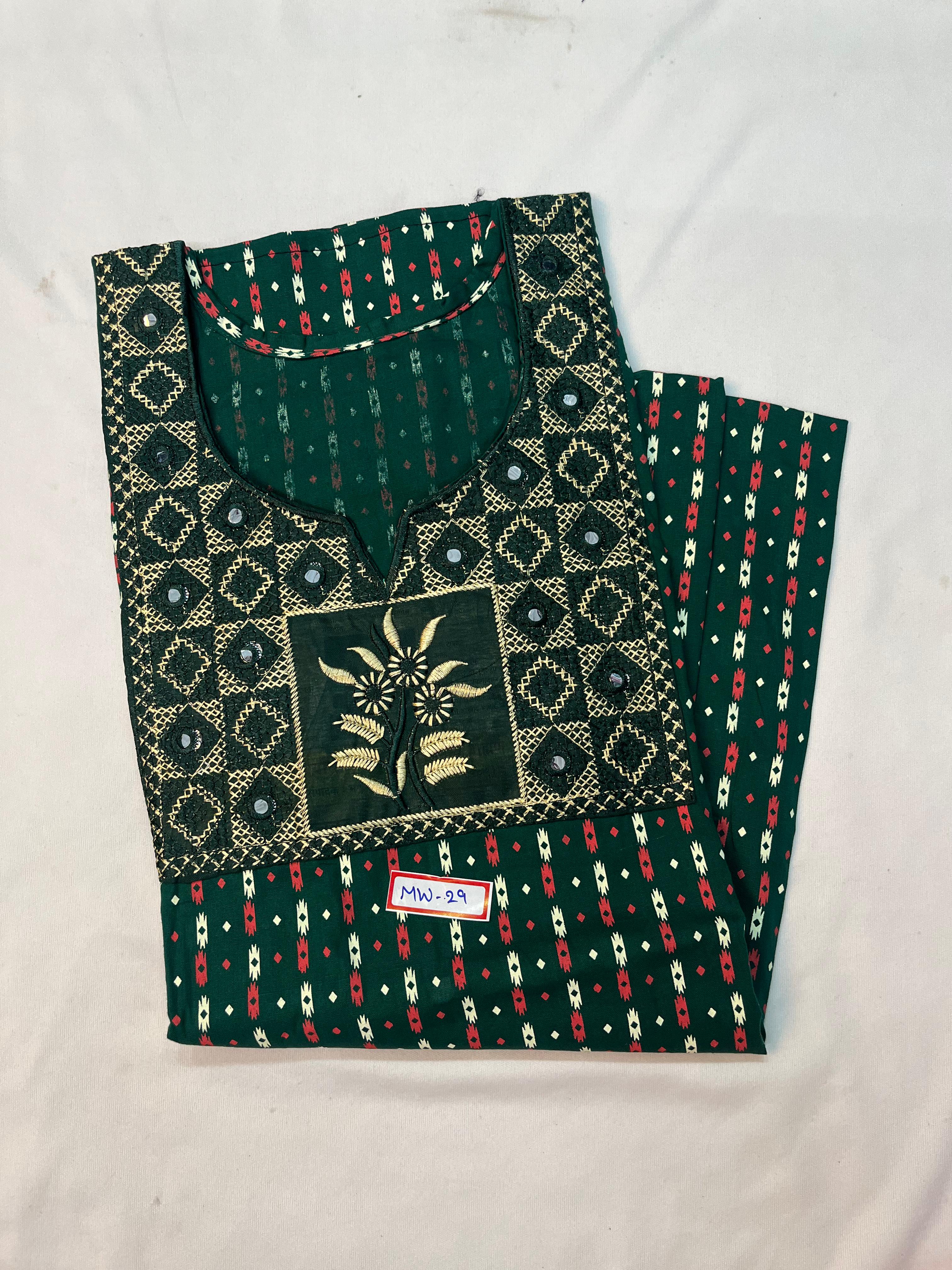 Mirror Finish Cotton Nighty with Free Style Size Green Colour