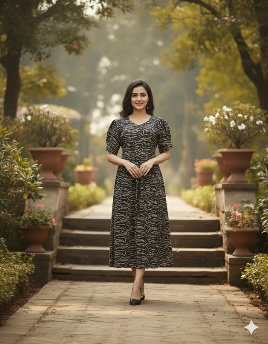 Premium Mul Cotton Frock Black – Puff Sleeve Design with Knots, Zero Shrinkage