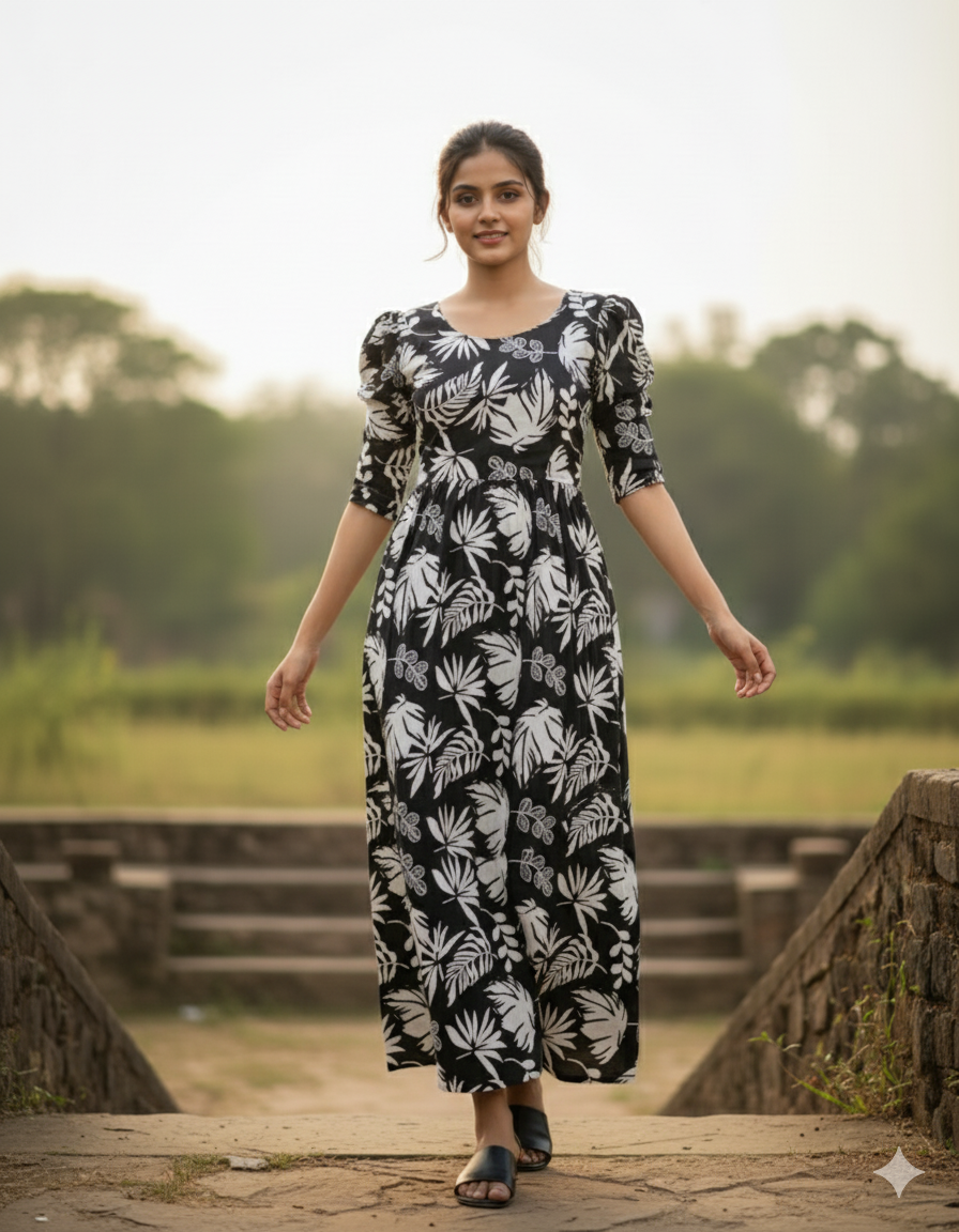 Puff Sleeve Design – Adds a touch of elegance and feminine charm.