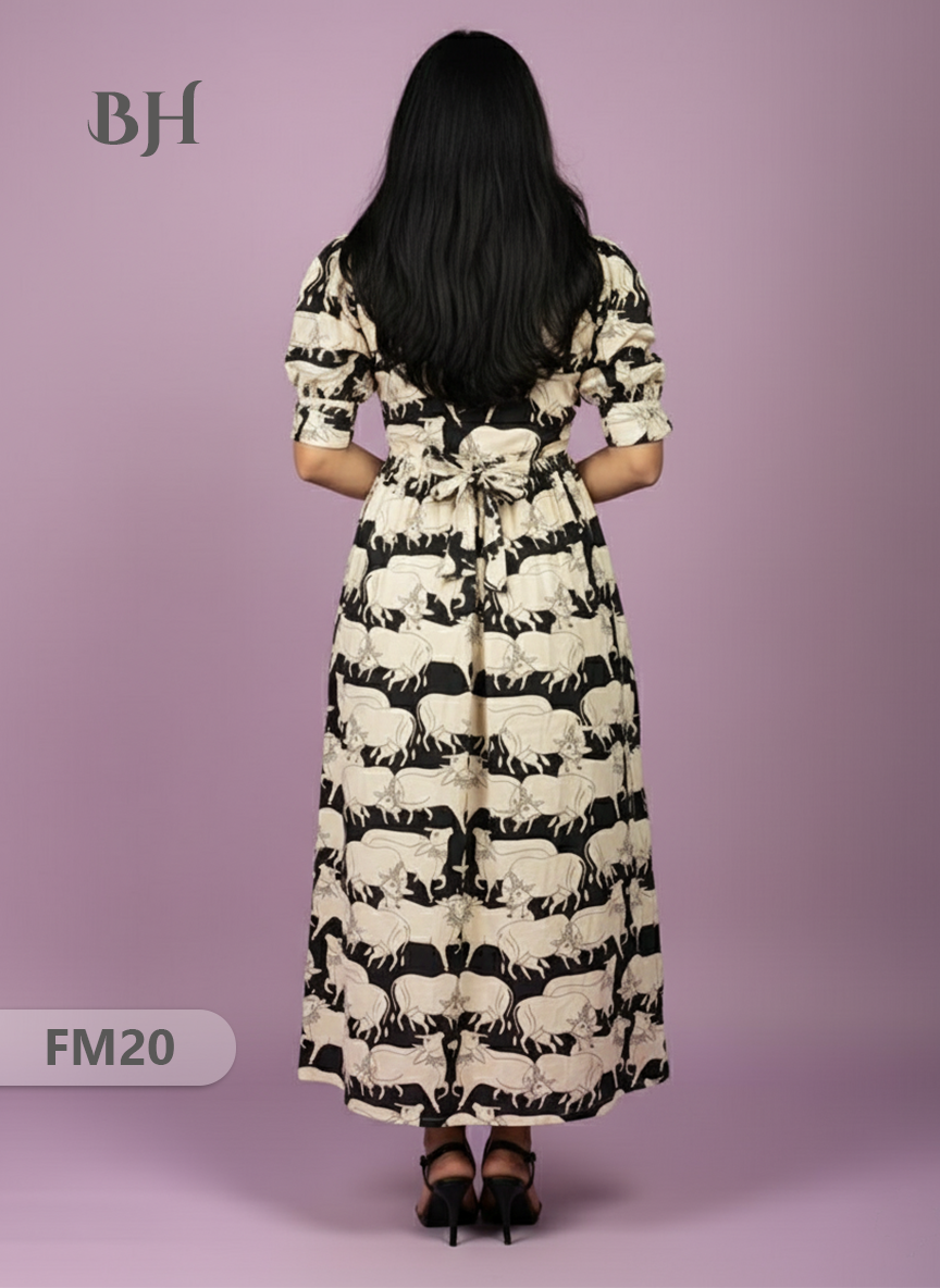 Premium Mul Cotton Frock Black – Puff Sleeve Design with Knots, Zero Shrinkage