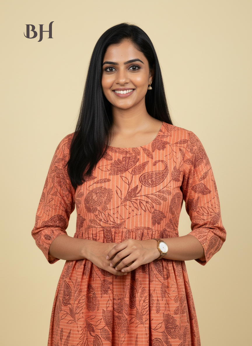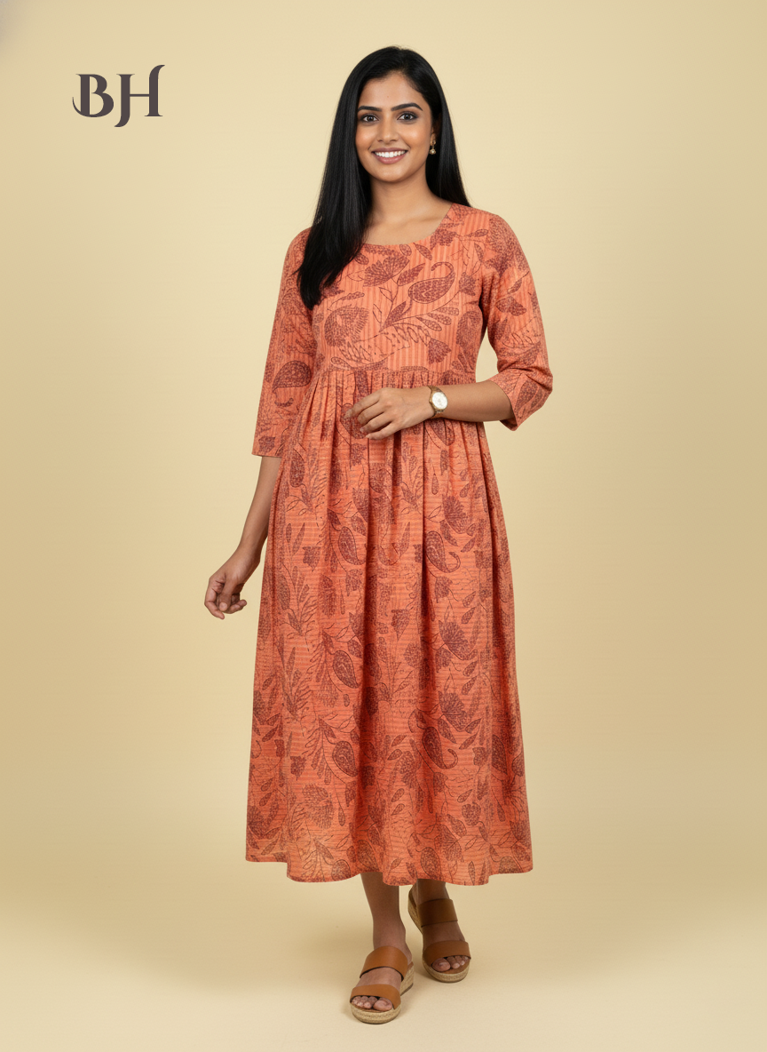Brown & Orange Cotton Frock for Women | Comfortable Daily Wear Dress