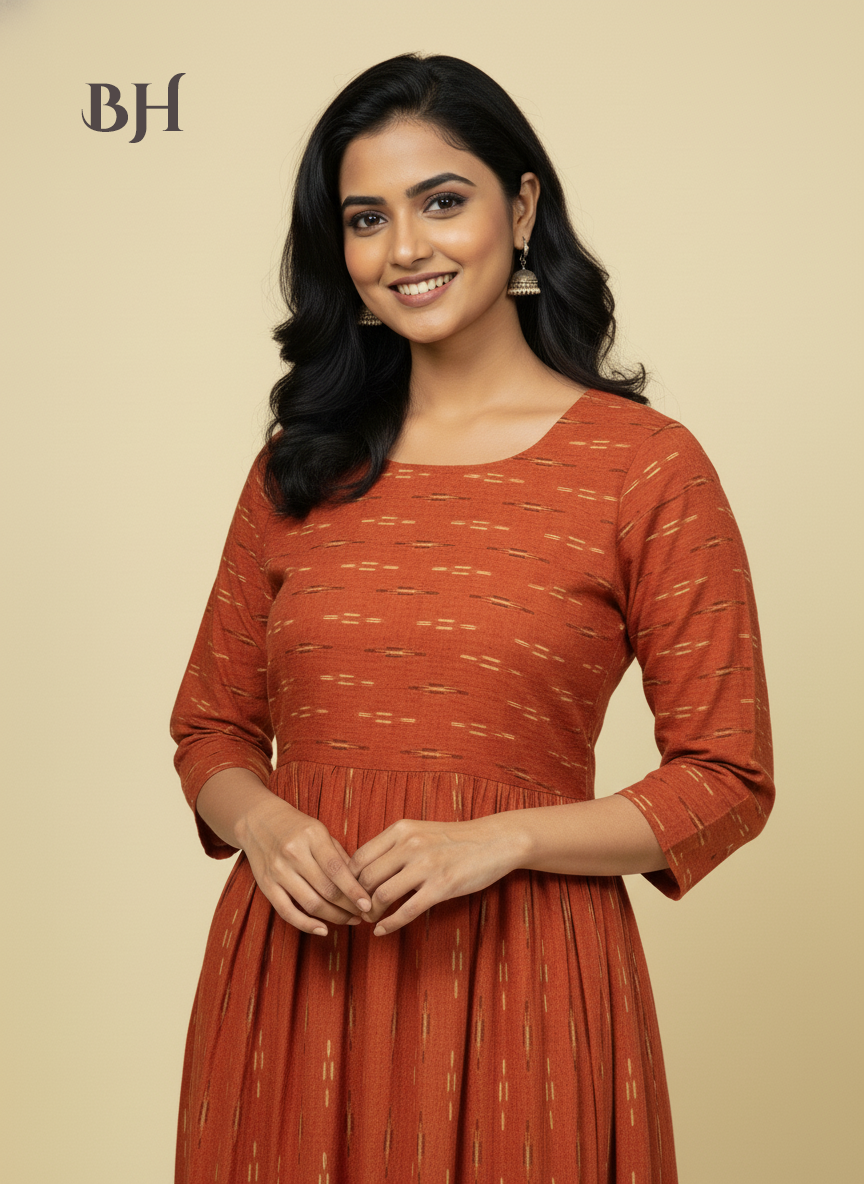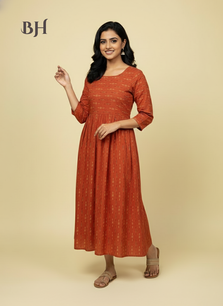 Orange Cotton Frock for Women | Comfortable Daily Wear Dress