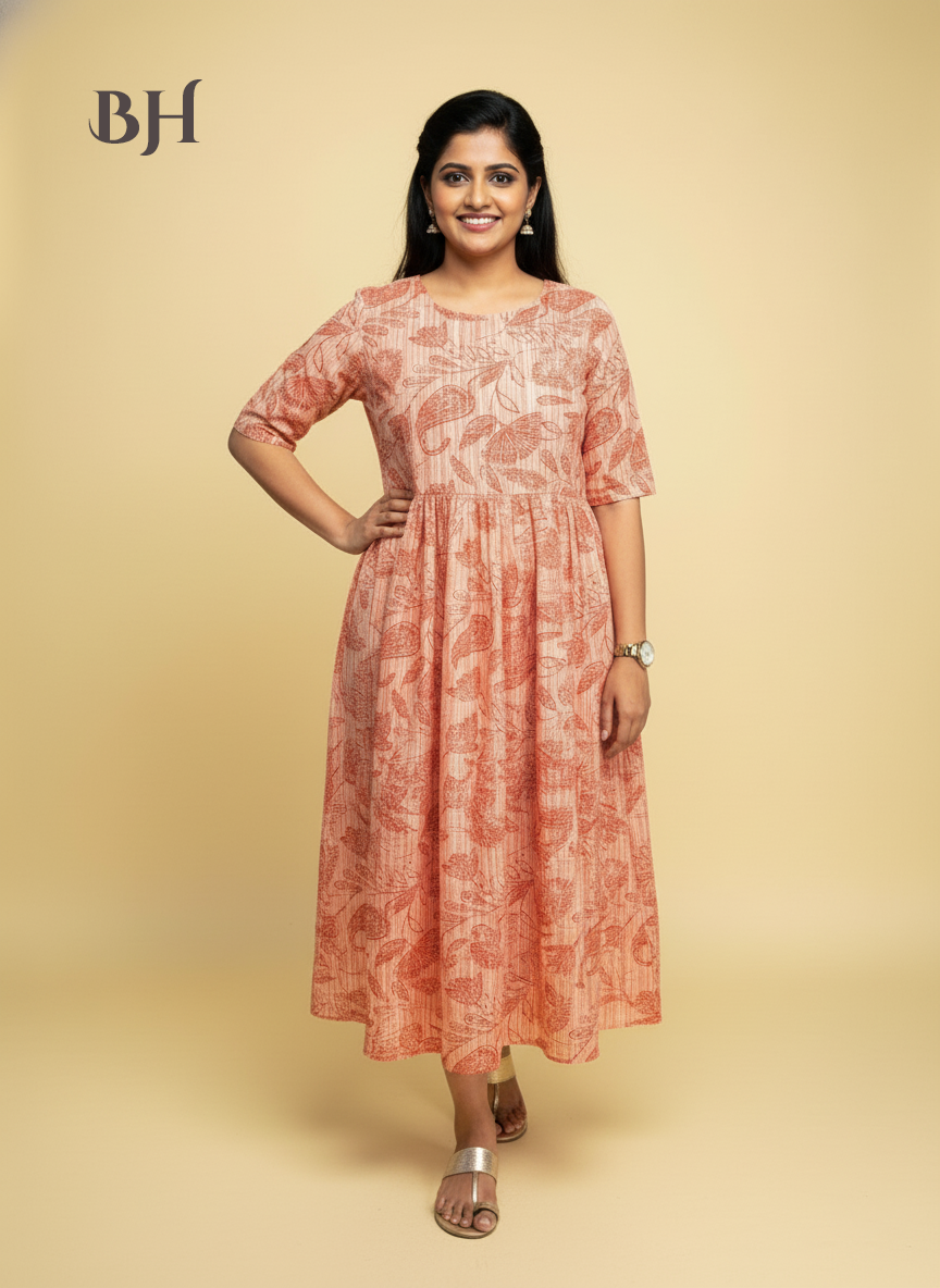 Orange Cotton Frock for Women | Comfortable Daily Wear Dress