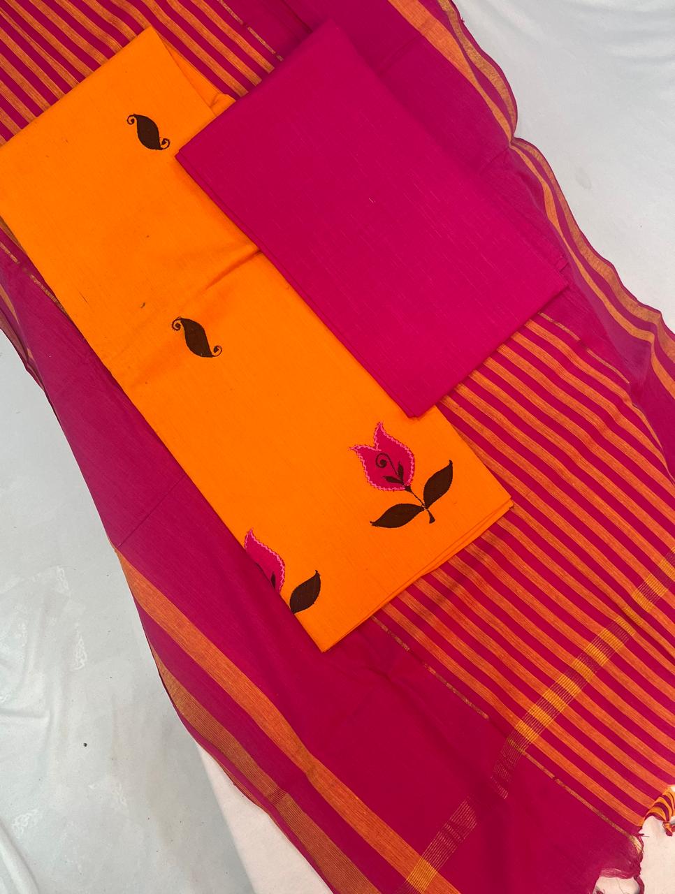 Patch Work Cotton Dress Material – Orange & Pink Color | Bhavana Handlooms