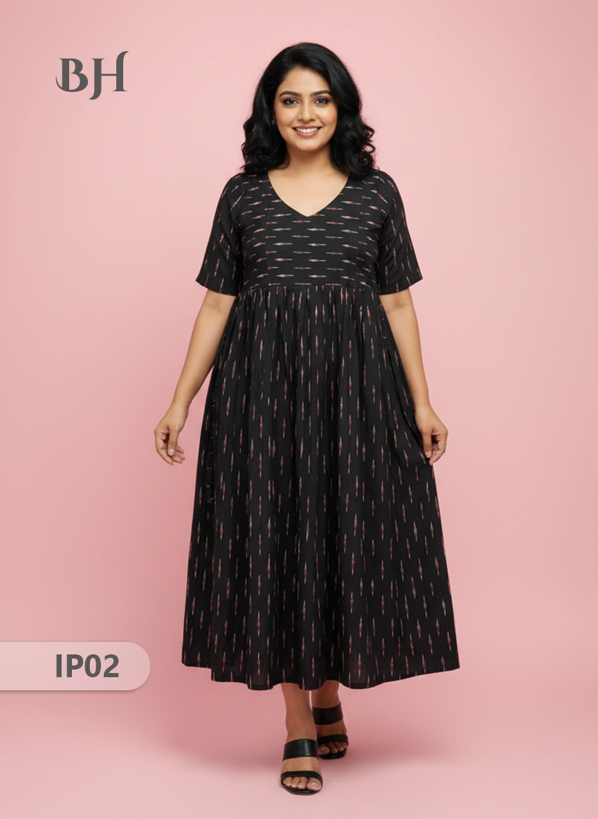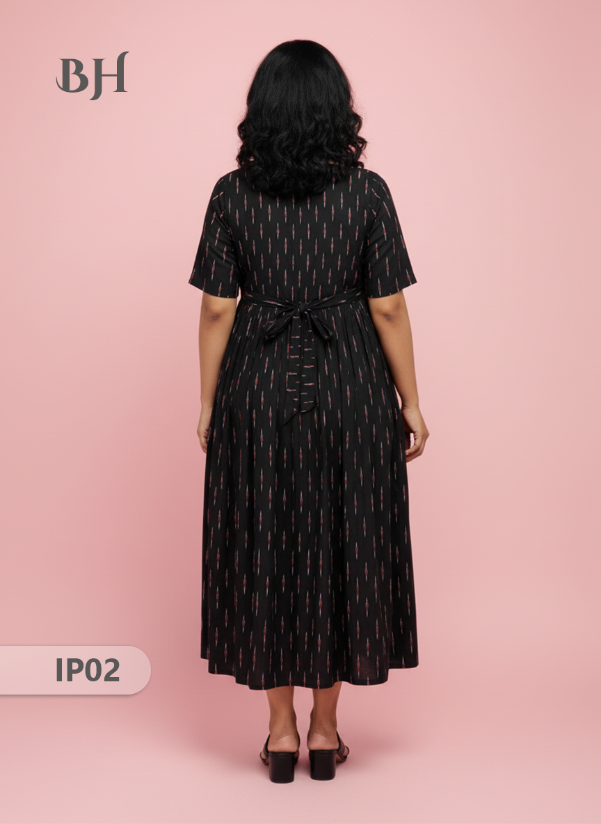 Pochampally Ikkath Feeding Frock – Black Cotton Frock with Half Lining