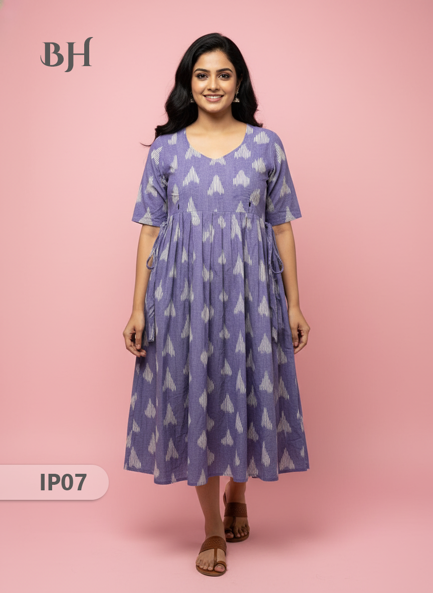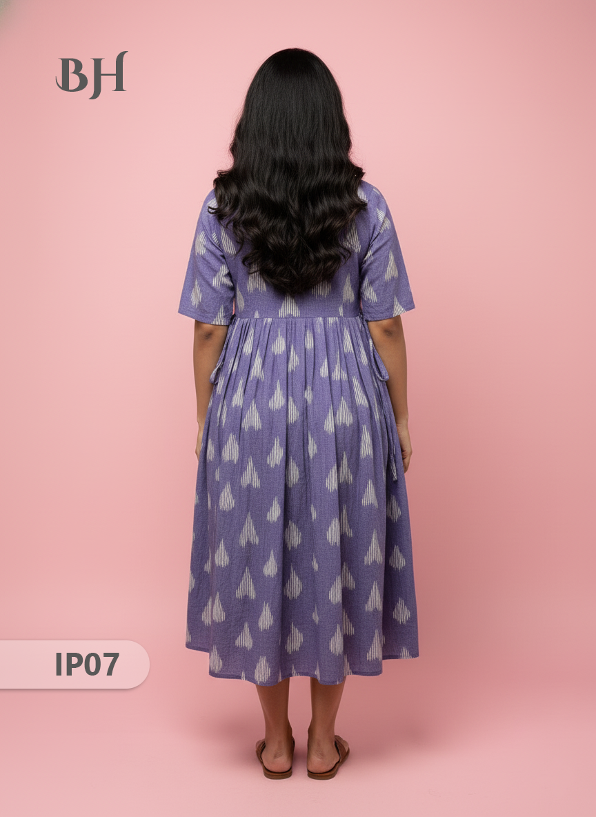 Pochampally Ikkath Feeding Frock – Light Voilet Cotton Frock with Half Lining