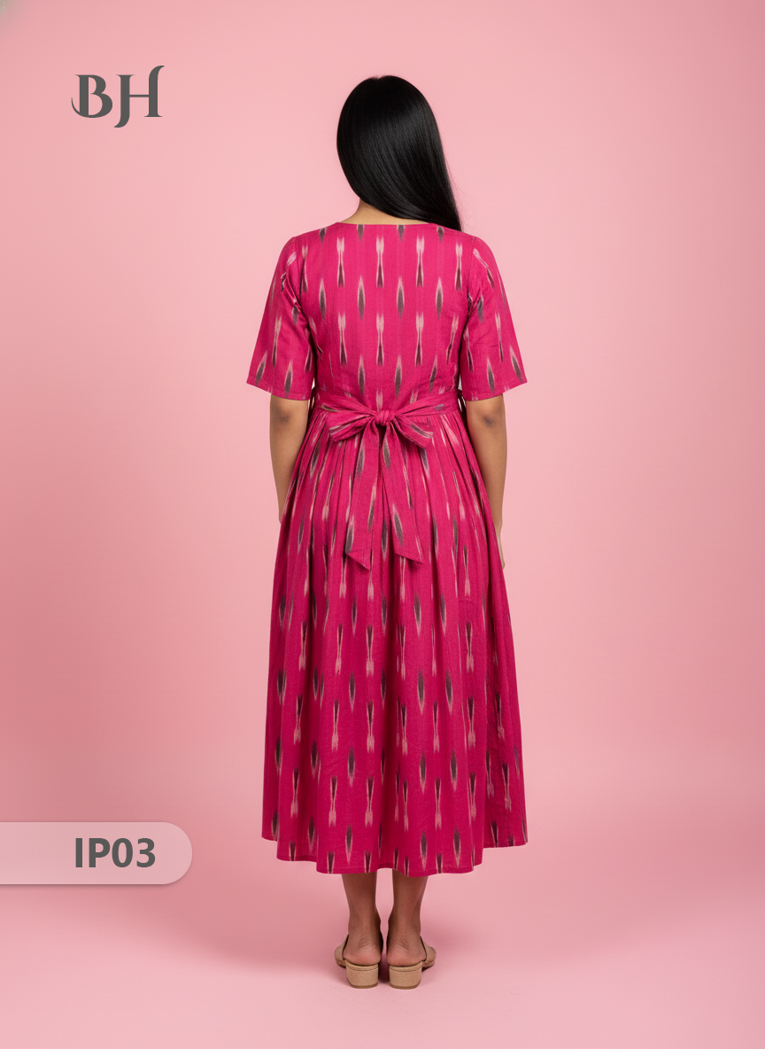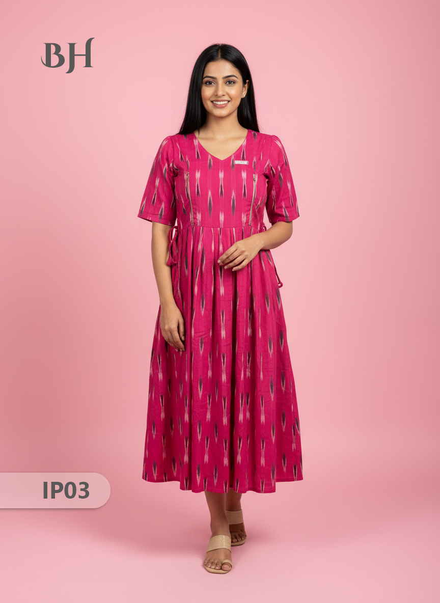 Pochampally Ikkath Feeding Frock – Pink Cotton Frock with Half Lining