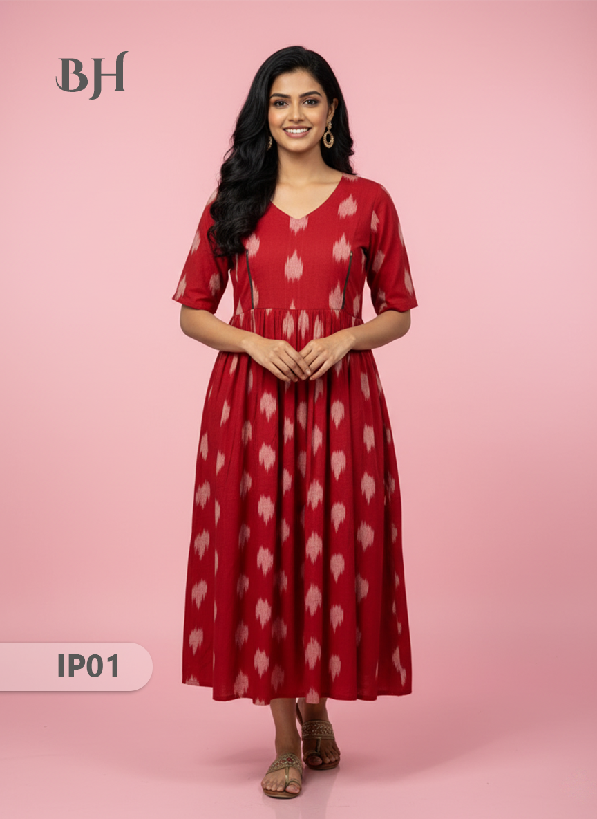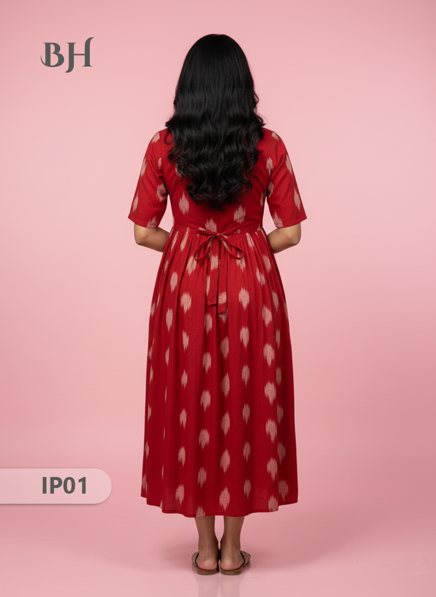 Pochampally Ikkath Feeding Frock – Red Cotton Frock with Half Lining