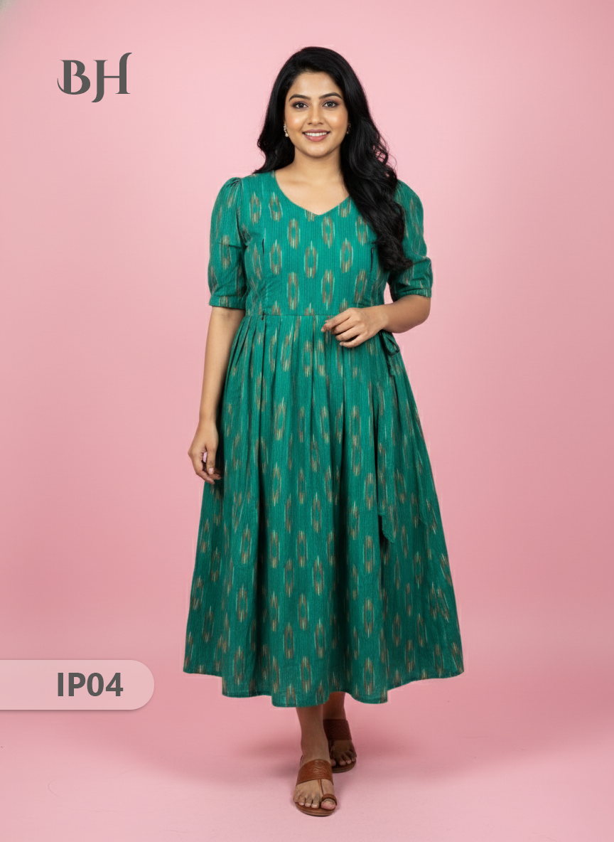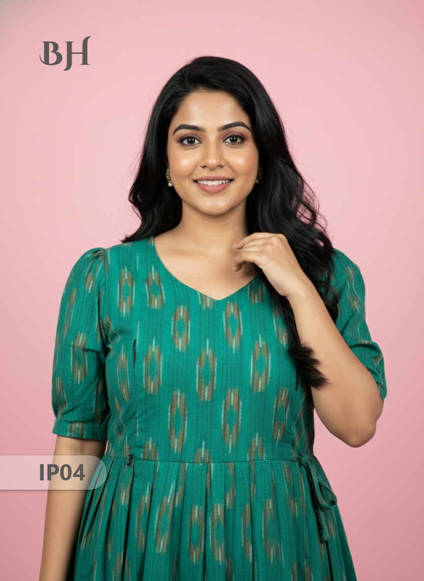 Keywords: Pochampally Ikkath Feeding Frock, Cotton Feeding Dress, Bhavana Originals Exclusive, Handloom Cotton Frock, Nursing Wear for Mothers, Half-Length Lining Feeding Frock.