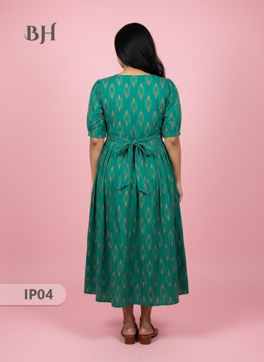 Pochampally Ikkath Feeding Frock – Sea Green Cotton Frock with Half Lining