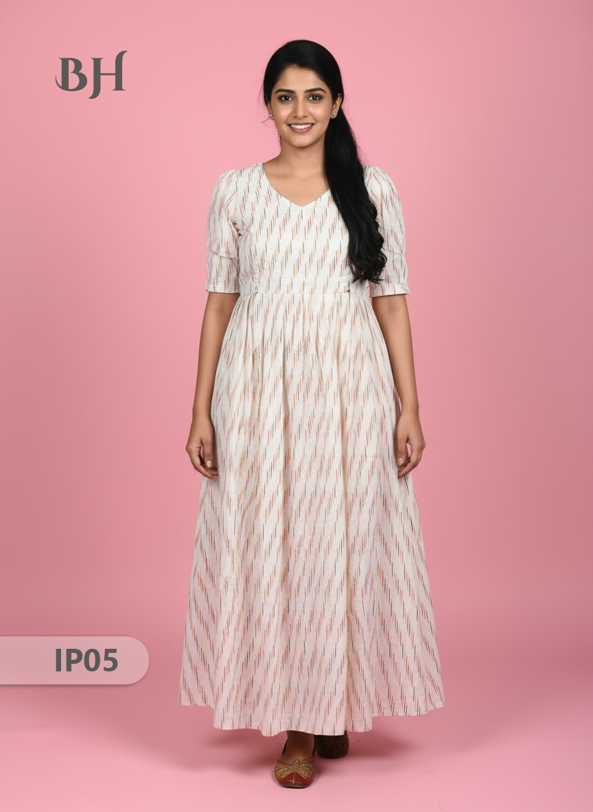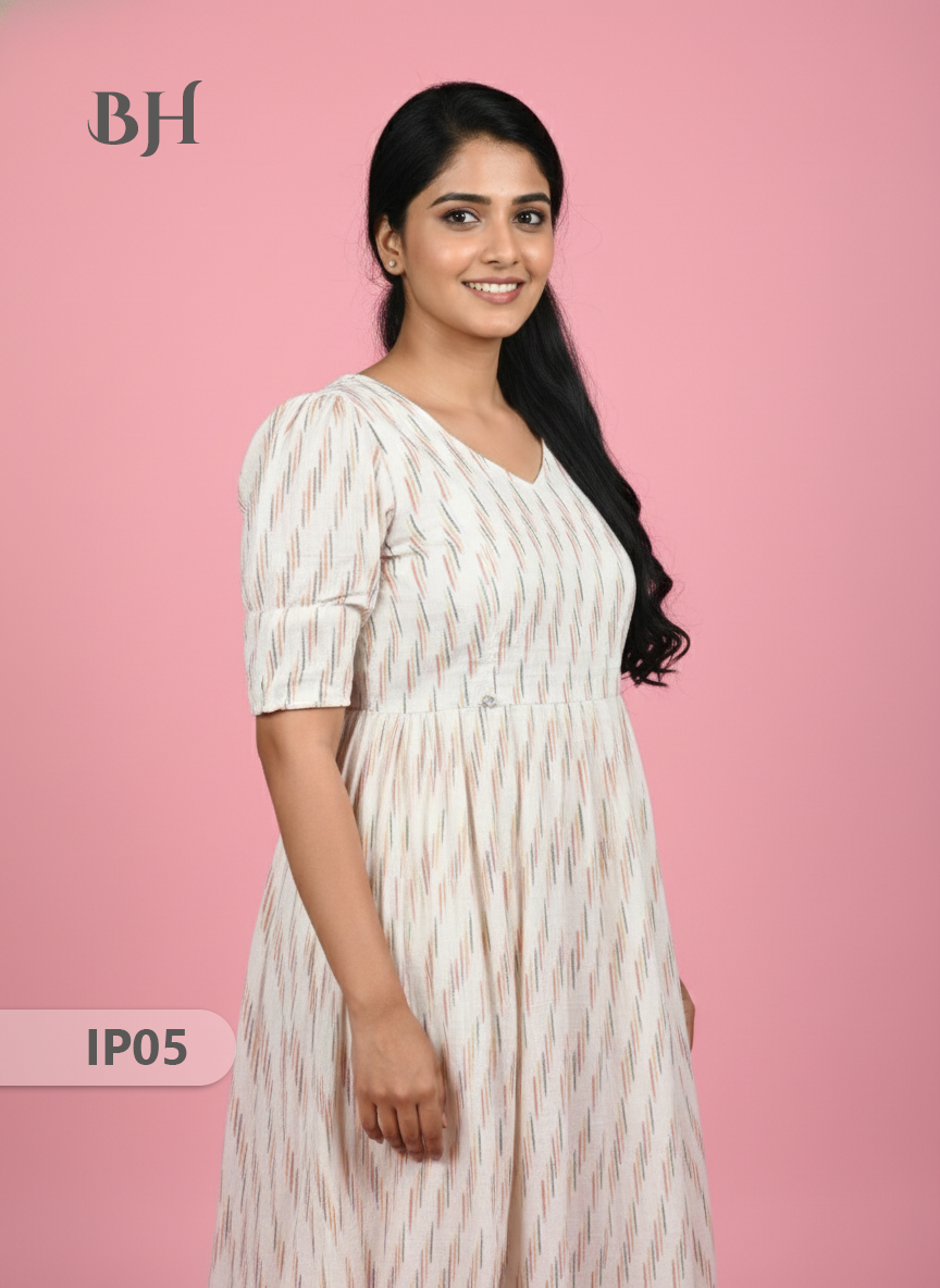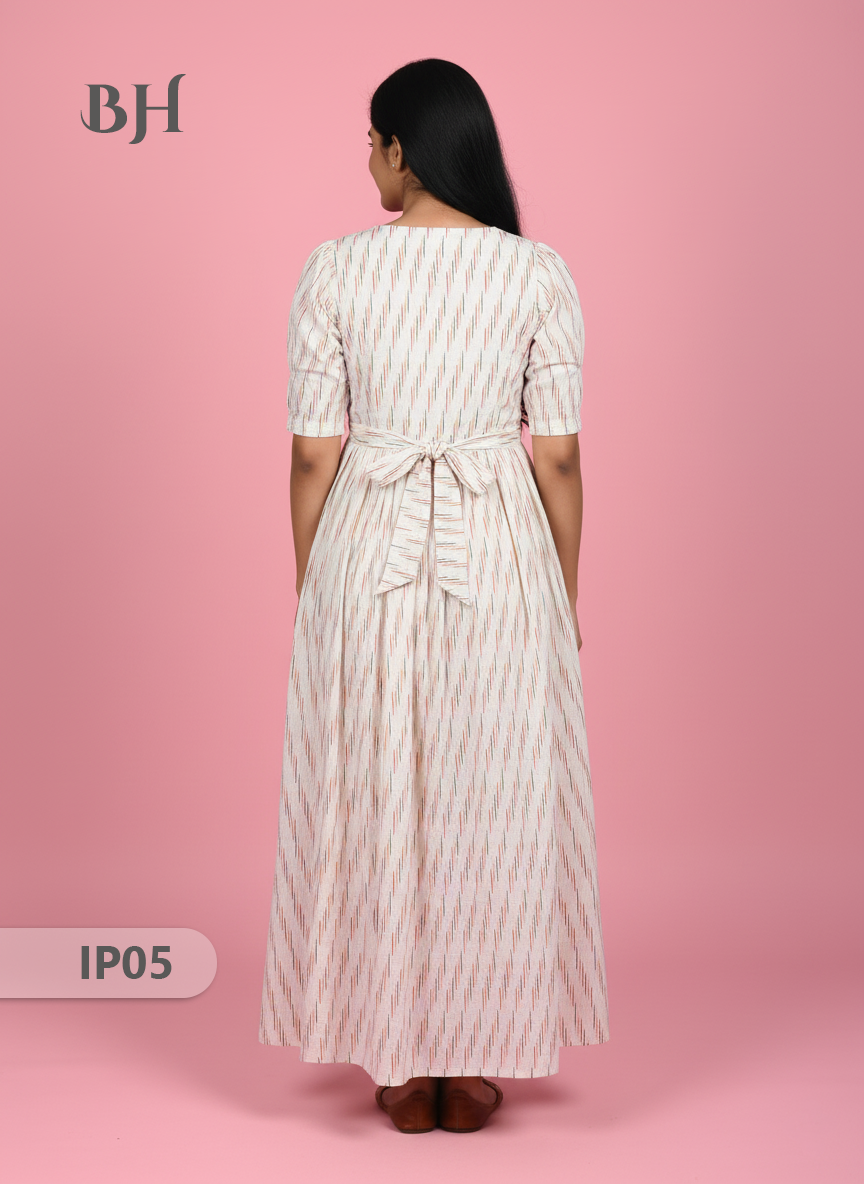 Pochampally Ikkath Feeding Frock – White Cotton Frock with Half Lining