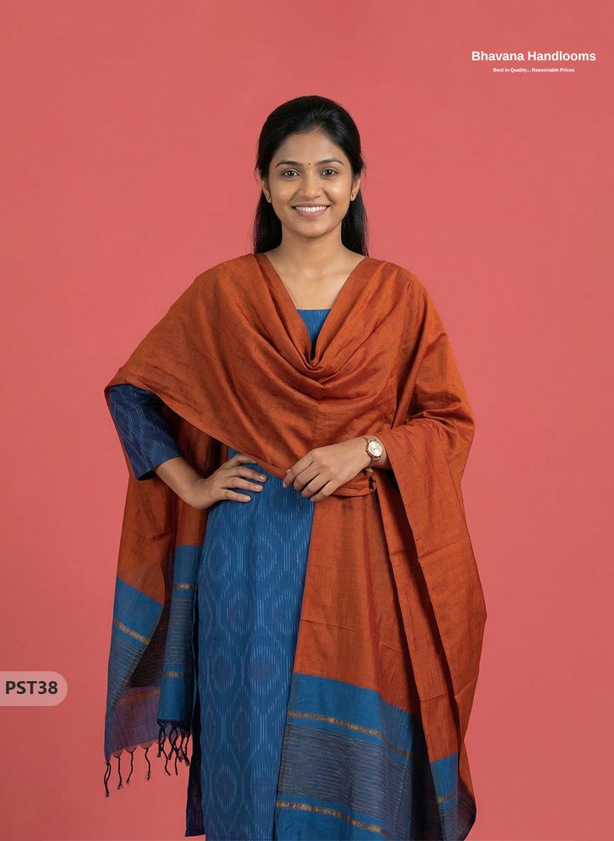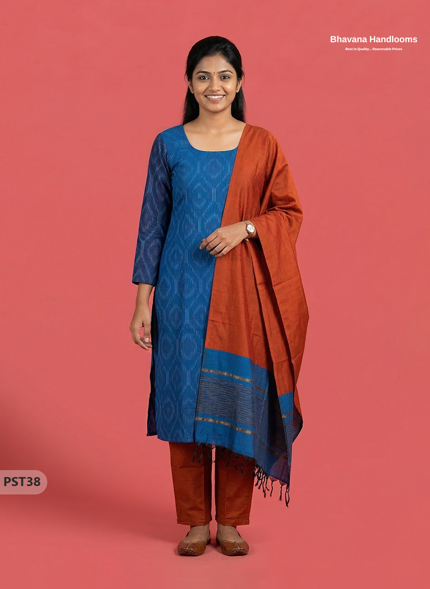 Pochampally Semi Pattu 3PC Kurti Set in Blue Colour | Ready-to-Wear Ethnic Wear