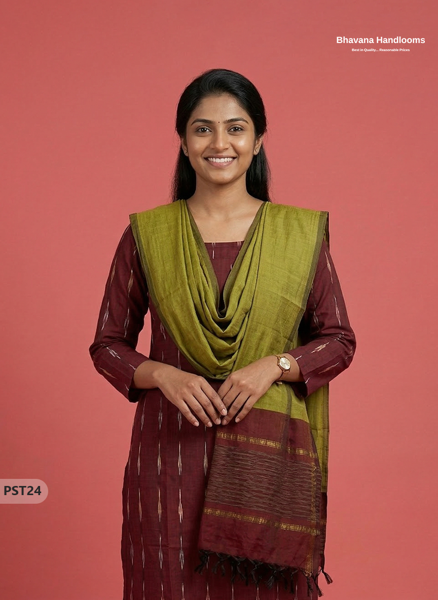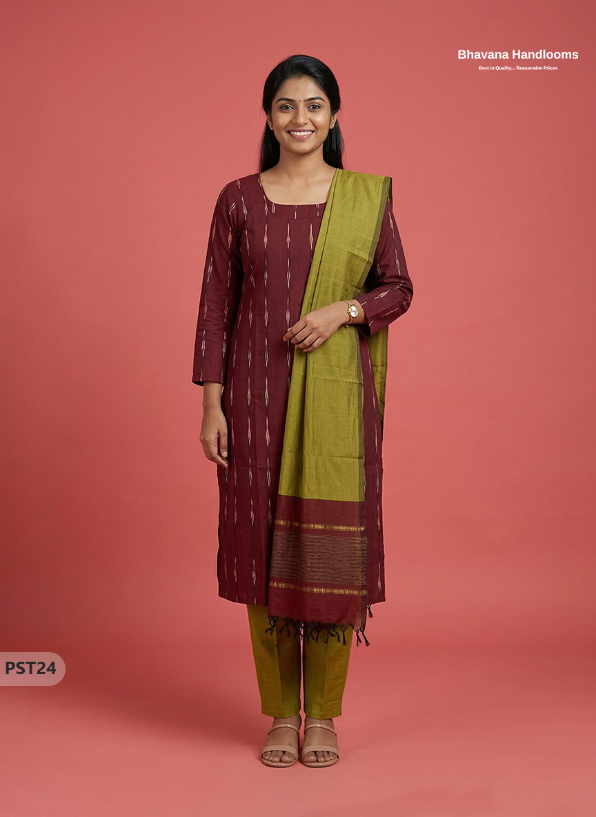 Pochampally Semi Pattu 3PC Kurti Set in Maroon Colour | Ready-to-Wear Ethnic Wear