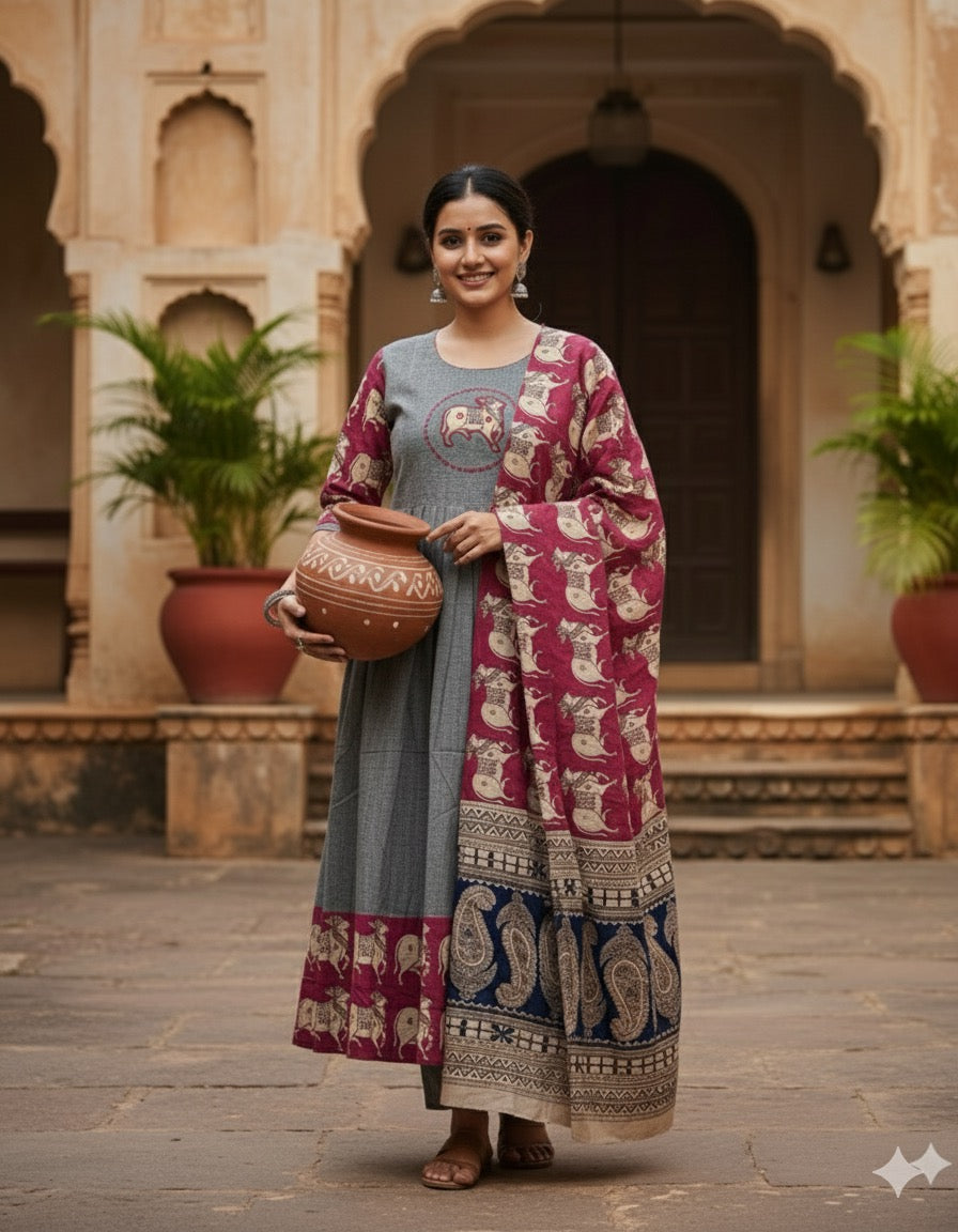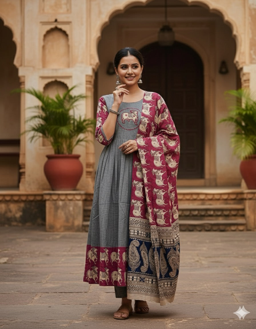 Premium 2-Piece Frock Set Gray Colour – Bhavana Originals Exclusive