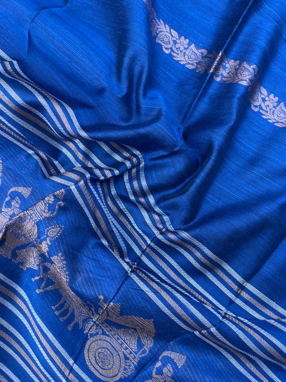 Premium Blue Raw Silk 3PC Unstitched Dress Material for Women