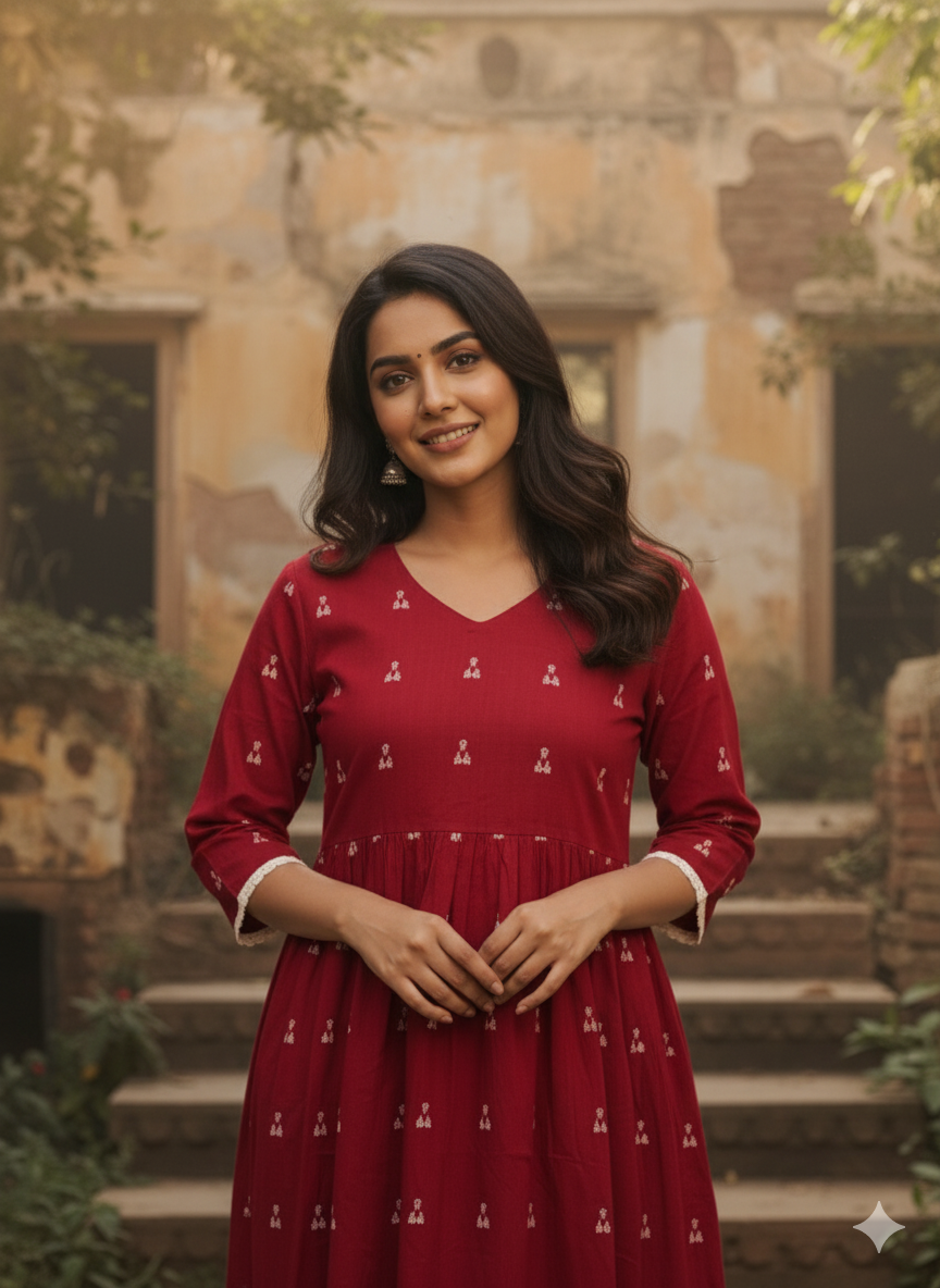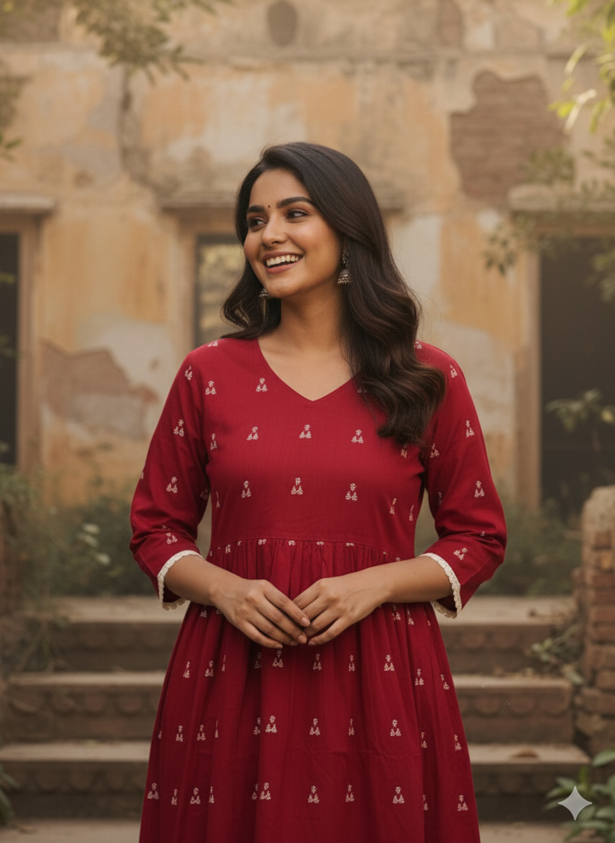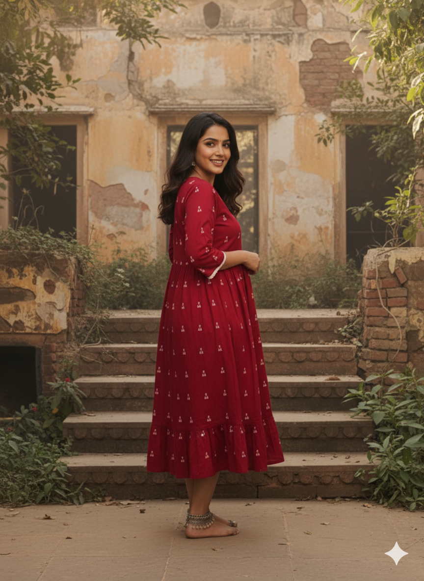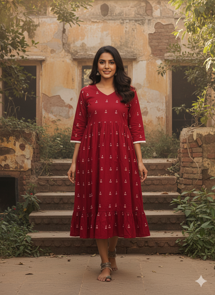 Premium Red Cotton Frock – Elegant Party & Casual Wear Dress