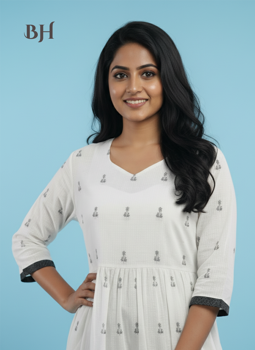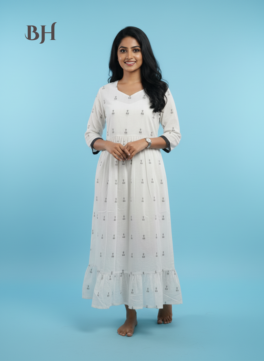 Elegant White Cotton Frock – Comfortable Daily & Occasion Wear