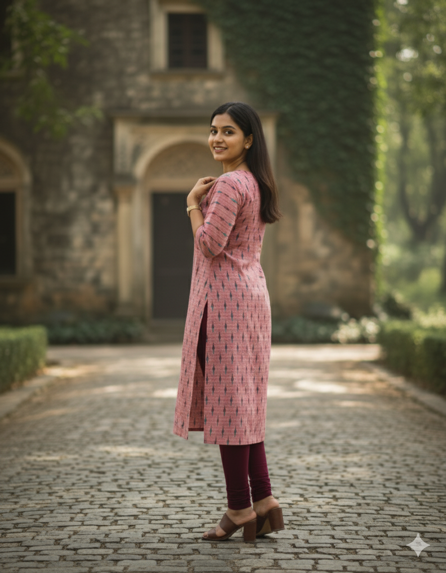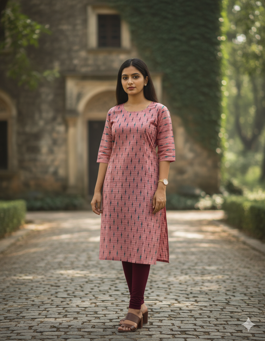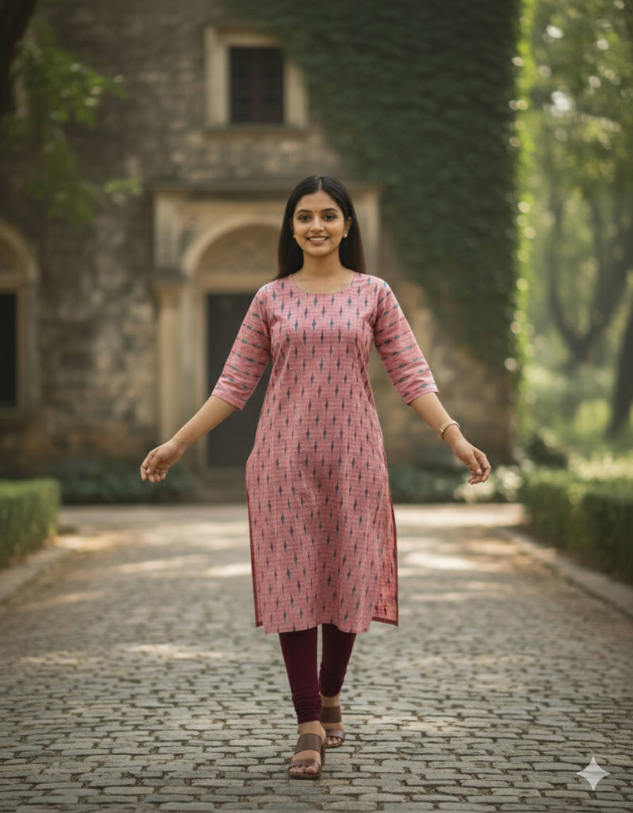 Premium Cotton Straight Cut Kurti – Pink Floral Print Design for Women