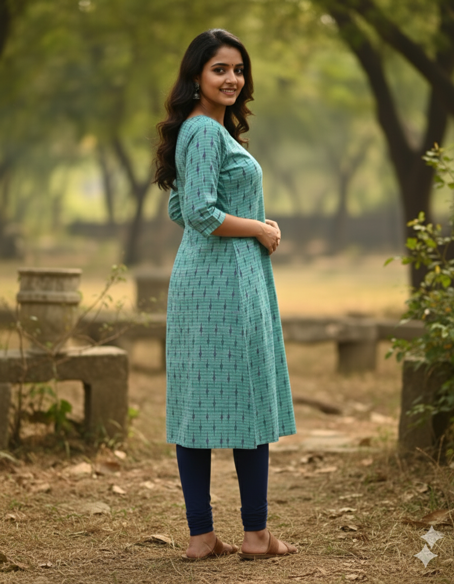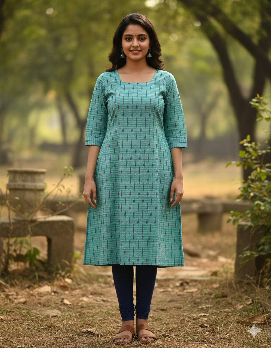 Premium Cotton Straight Cut Kurti – Beetle Green Floral Print Design for Women