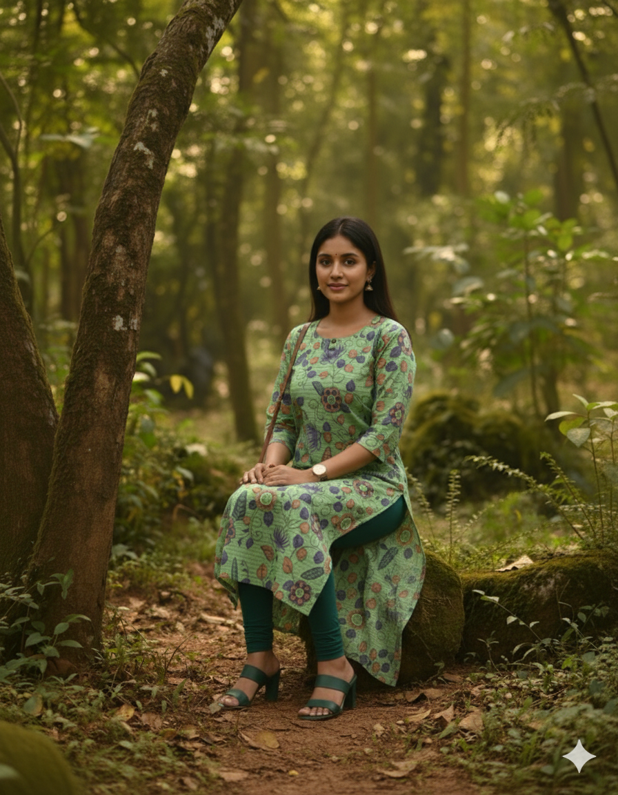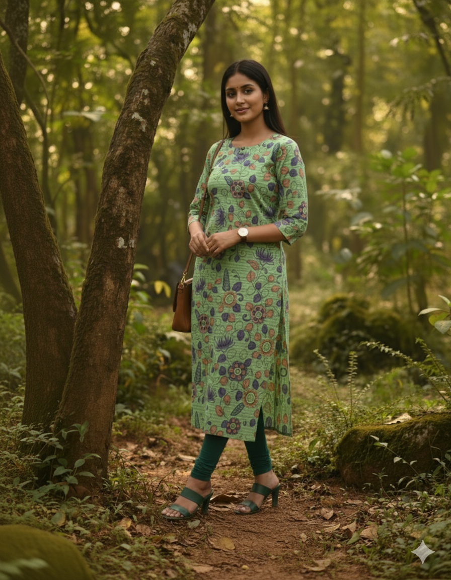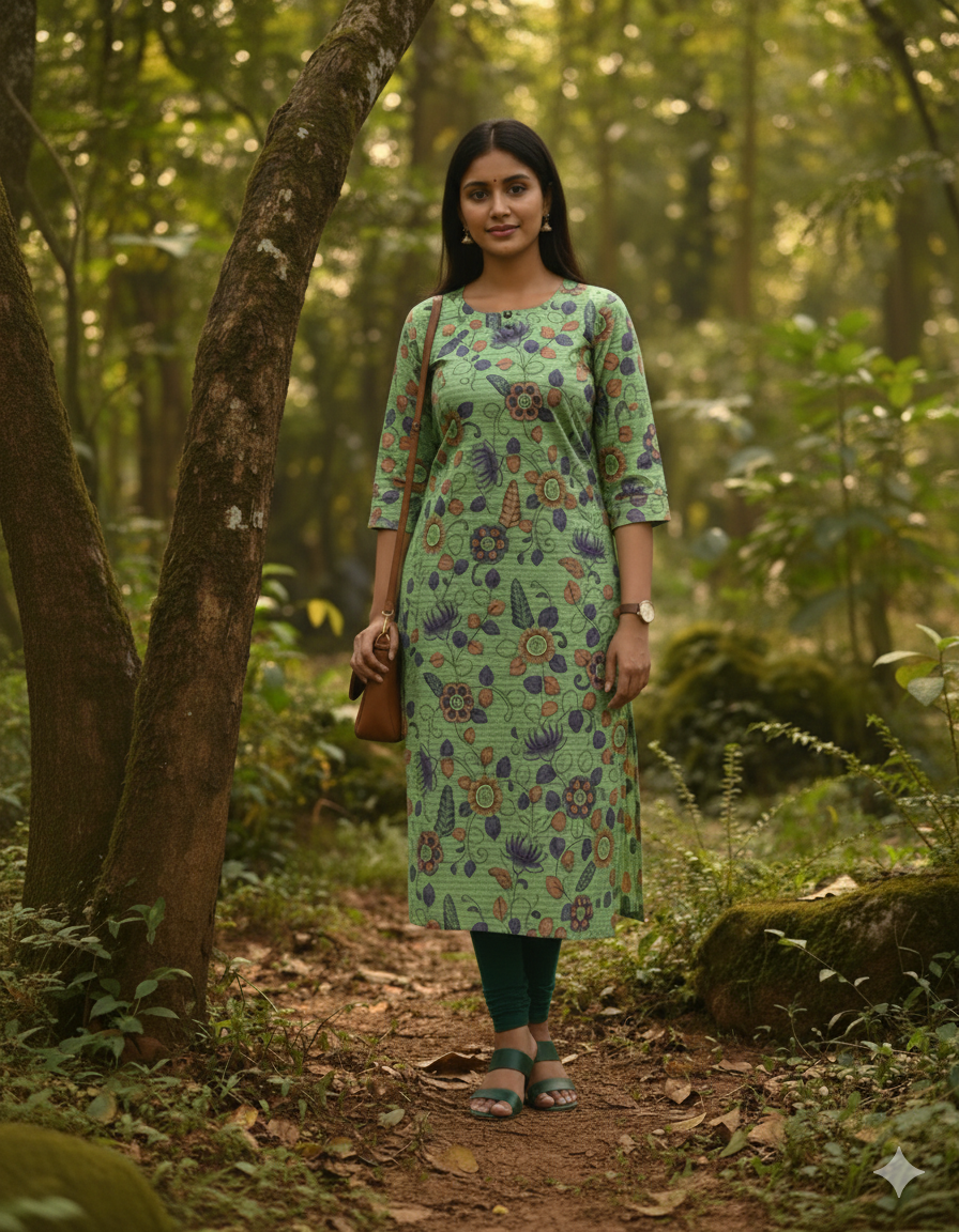 Premium Straight Cut Kurti – Green Colour with Beautiful Floral Print