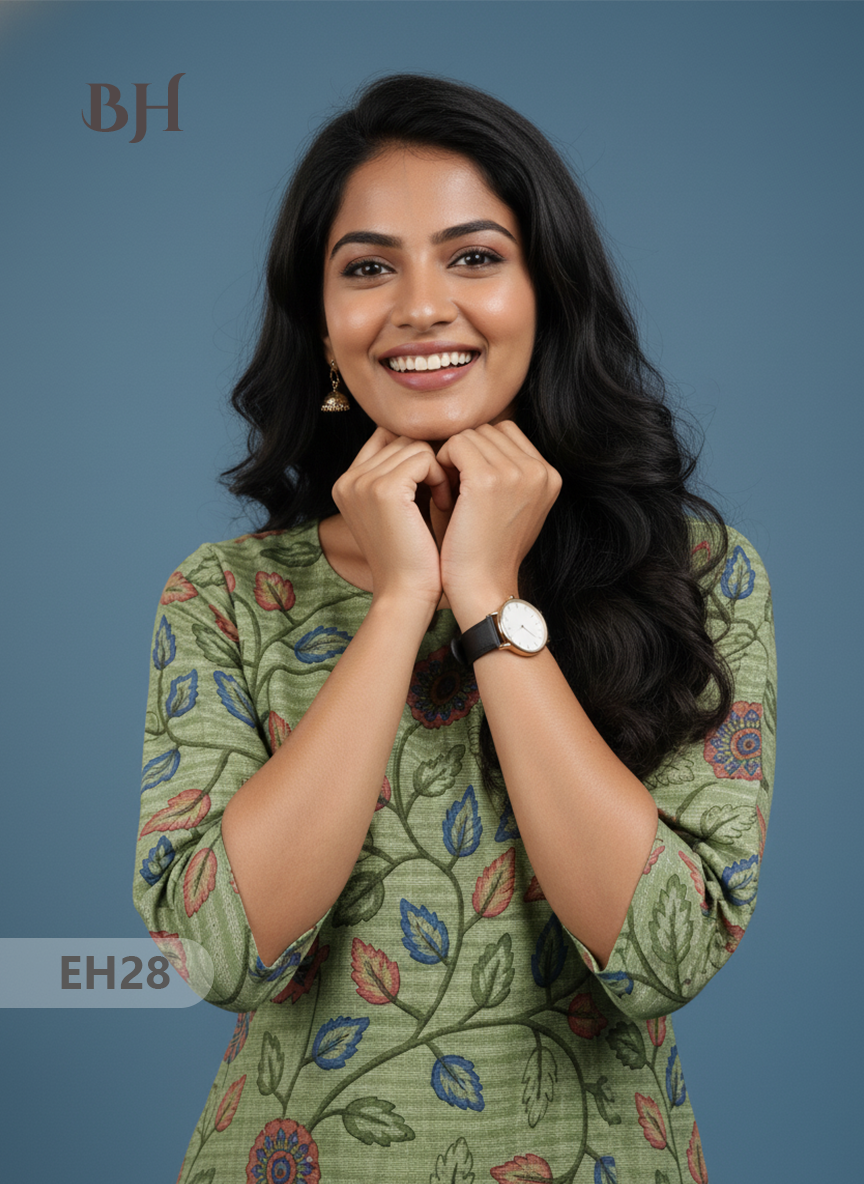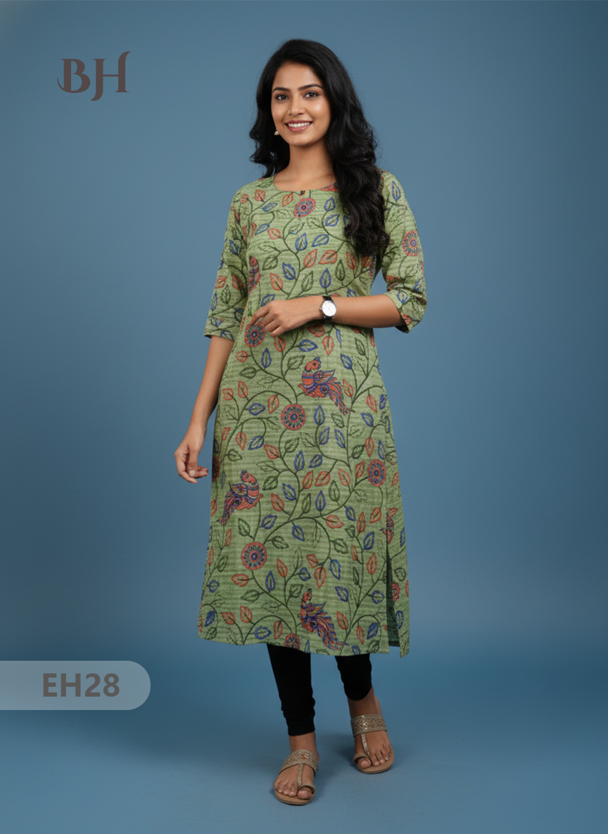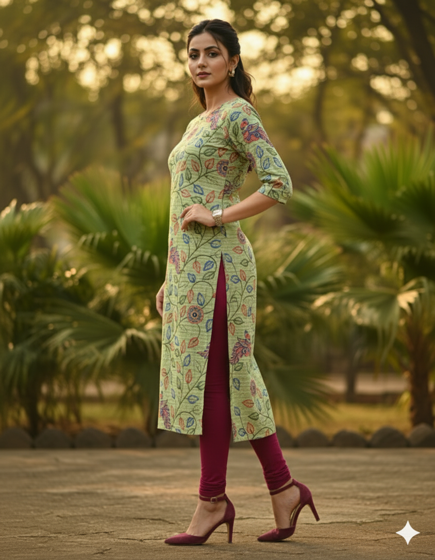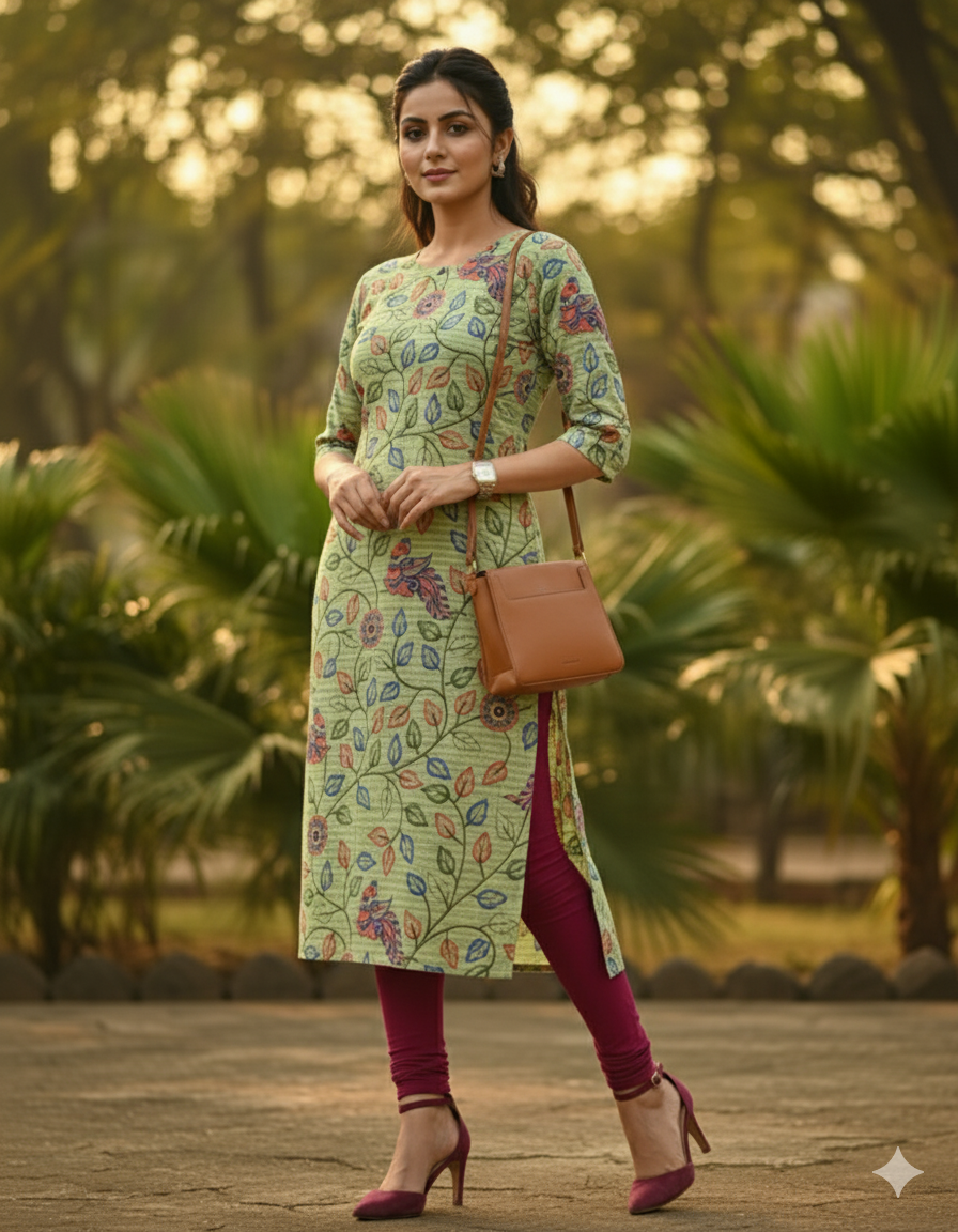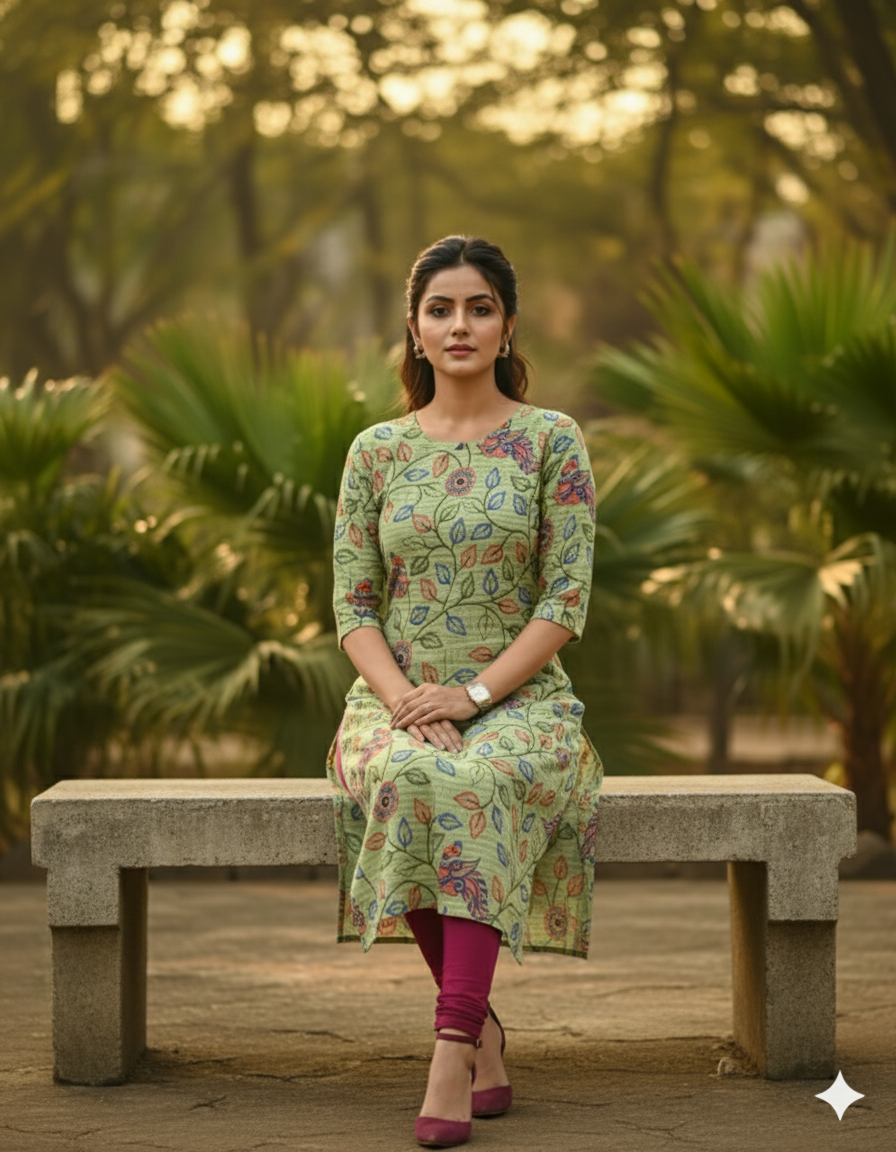 Premium Cotton Straight Cut Kurti – Green Floral Print Design for Women