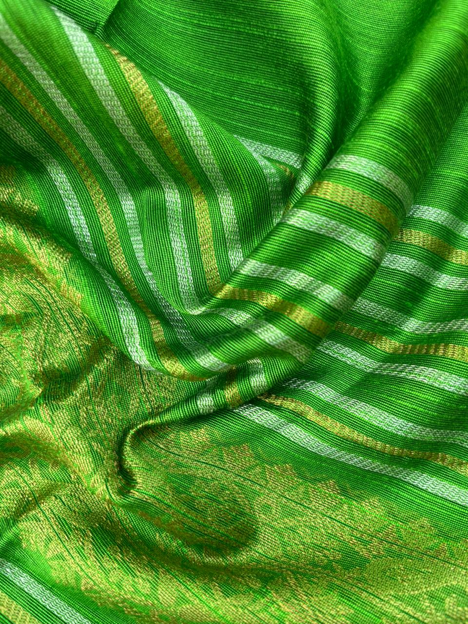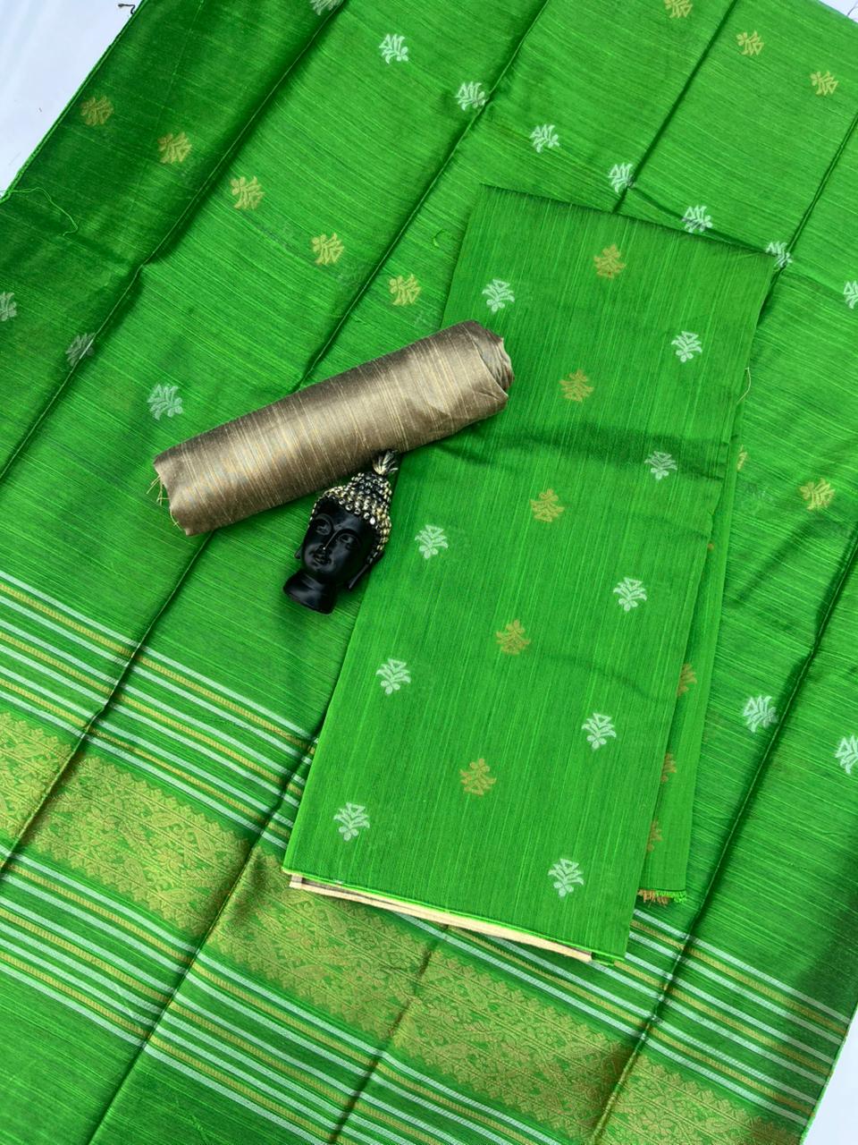 Premium Green Raw Silk 3PC Unstitched Dress Material for Women