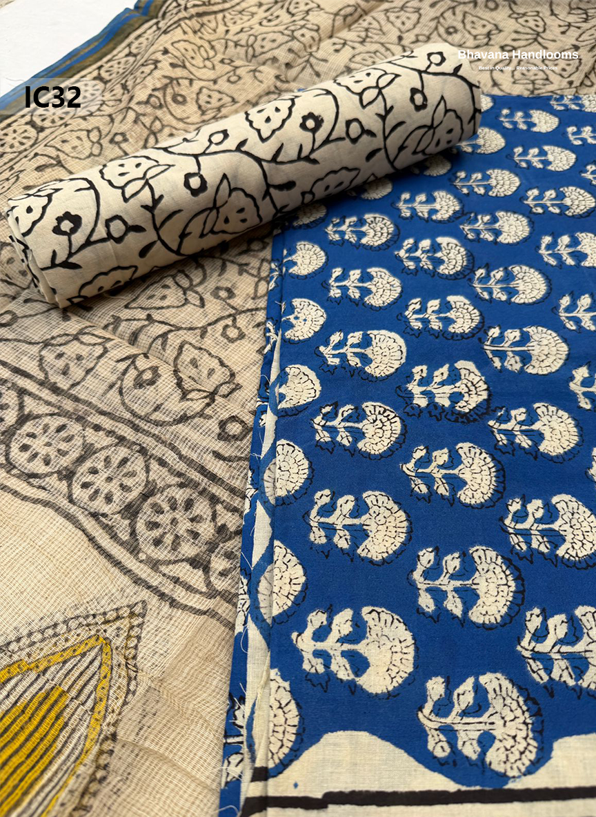 Premium Jaipur Cotton Dress Material with Soft Kota Dupatta with Blue Colour Top