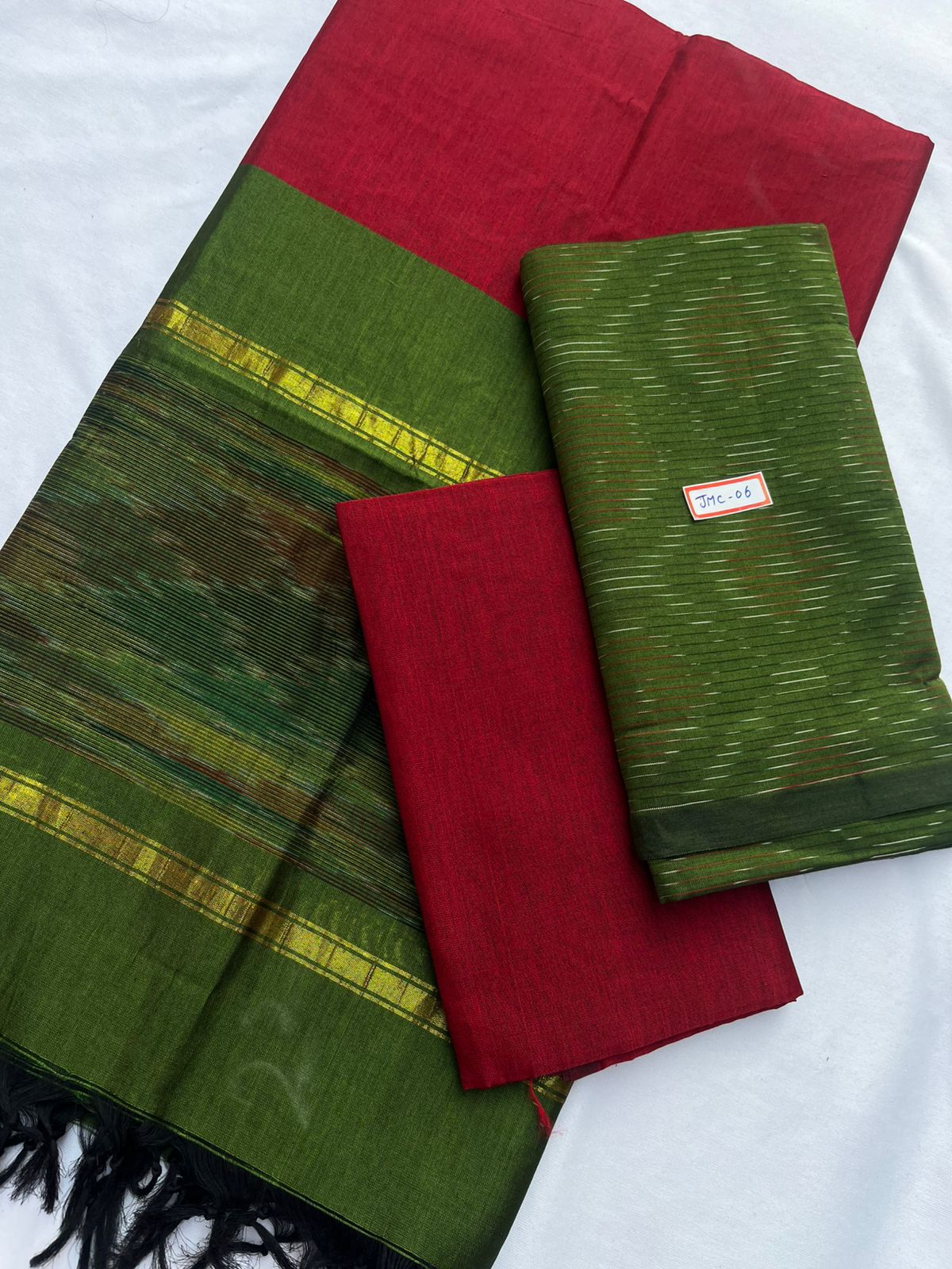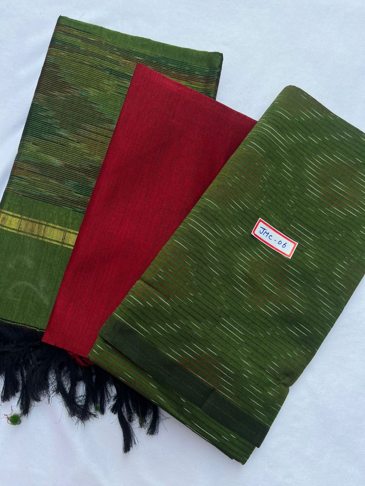 Premium Pochampally Mercerised Cotton 3PC Dress Material – Green Colour