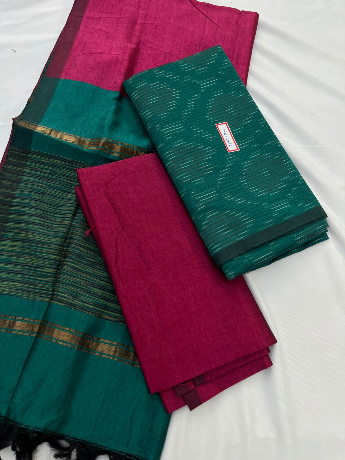 Premium Pochampally Mercerised Cotton 3PC Dress Material – Sea Green Colour