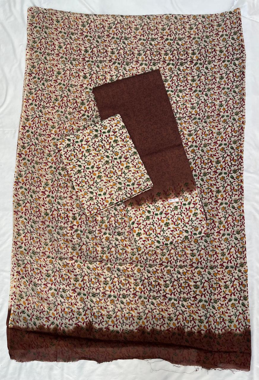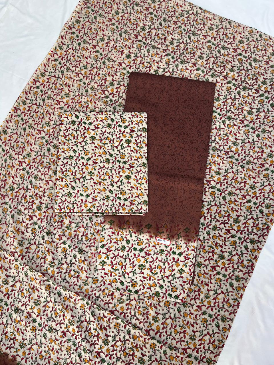 Pure Cotton Hand block Printed Dress Material – Congo Brown Colour Ethnic Wear for Women
