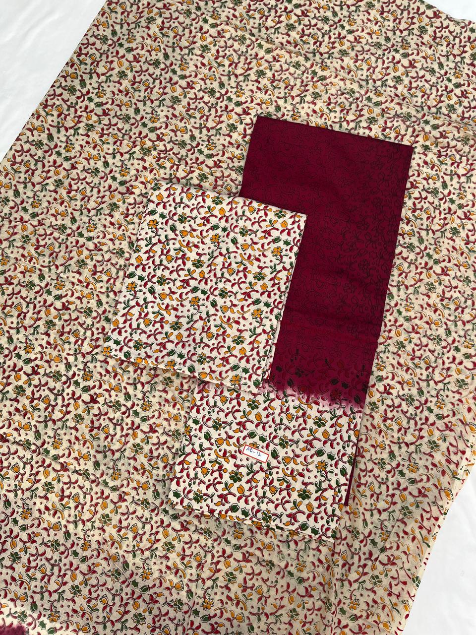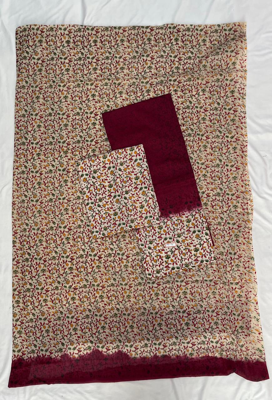 Pure Cotton Hand block Printed Dress Material – Maroon Colour Ethnic Wear for Women