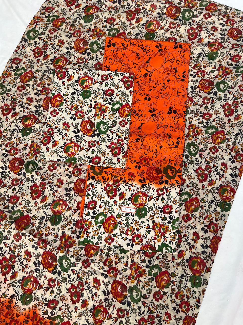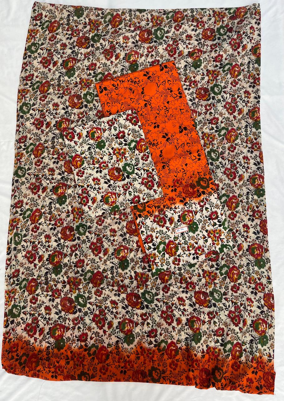 Pure Cotton Hand block Printed Dress Material – Orange Blue Colour Ethnic Wear for Women