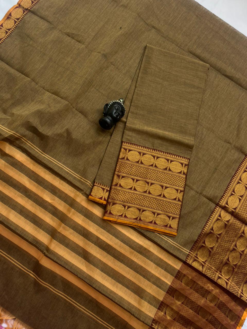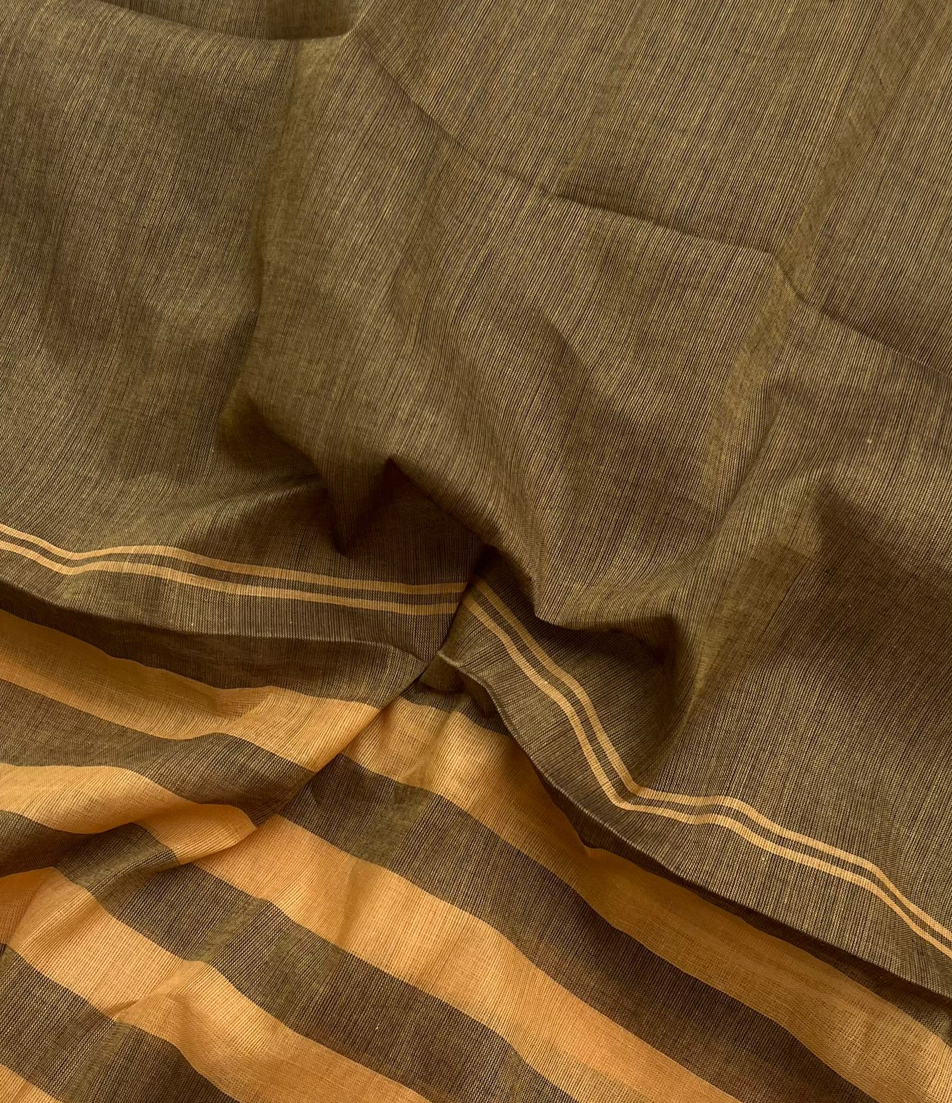 Pure Cotton Handloom Top & Dupatta Set | Dark Brown Dress Material