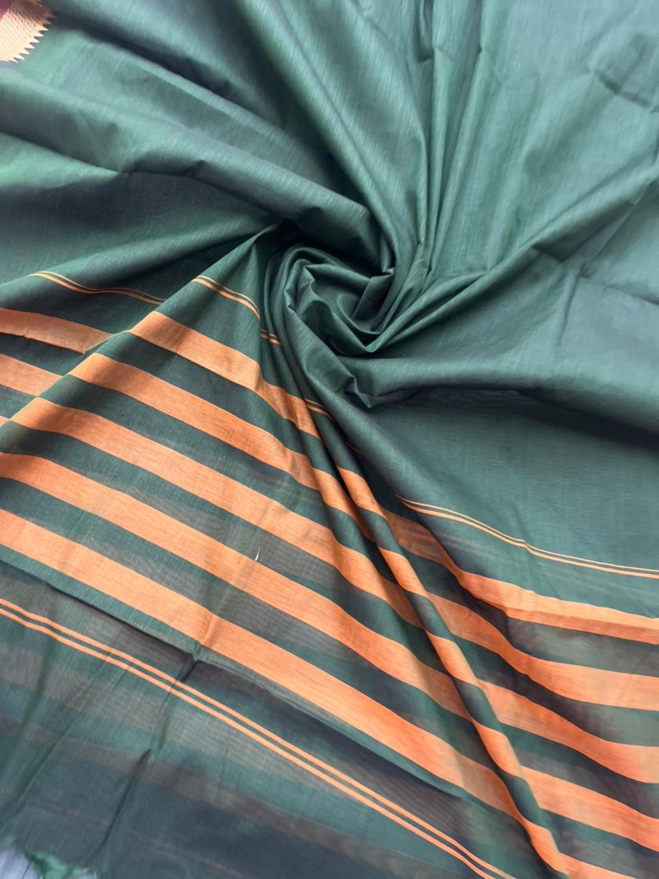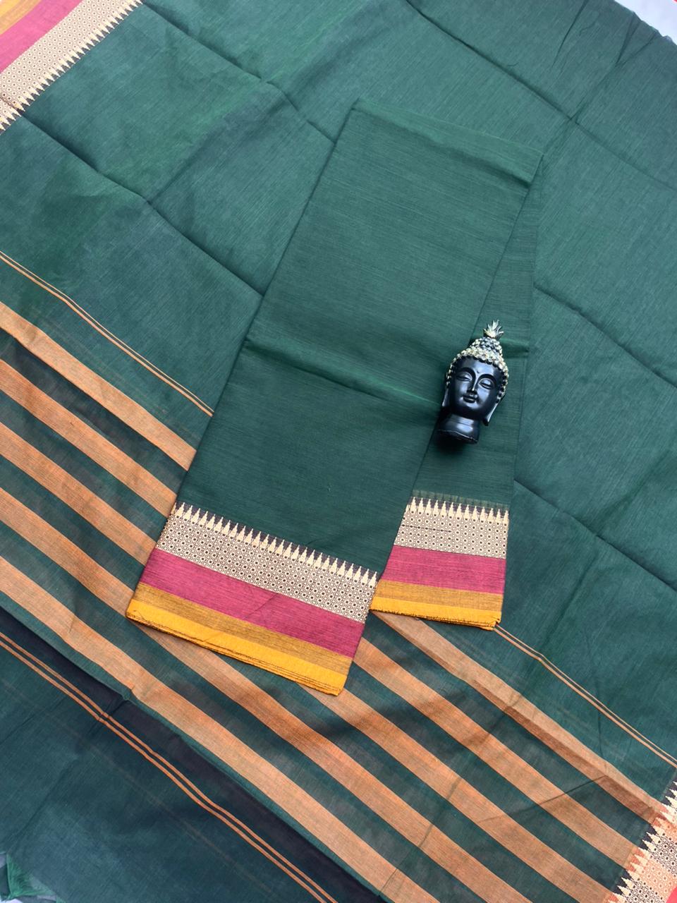 Pure Cotton Handloom Top & Dupatta Set | Dark Green Dress Material