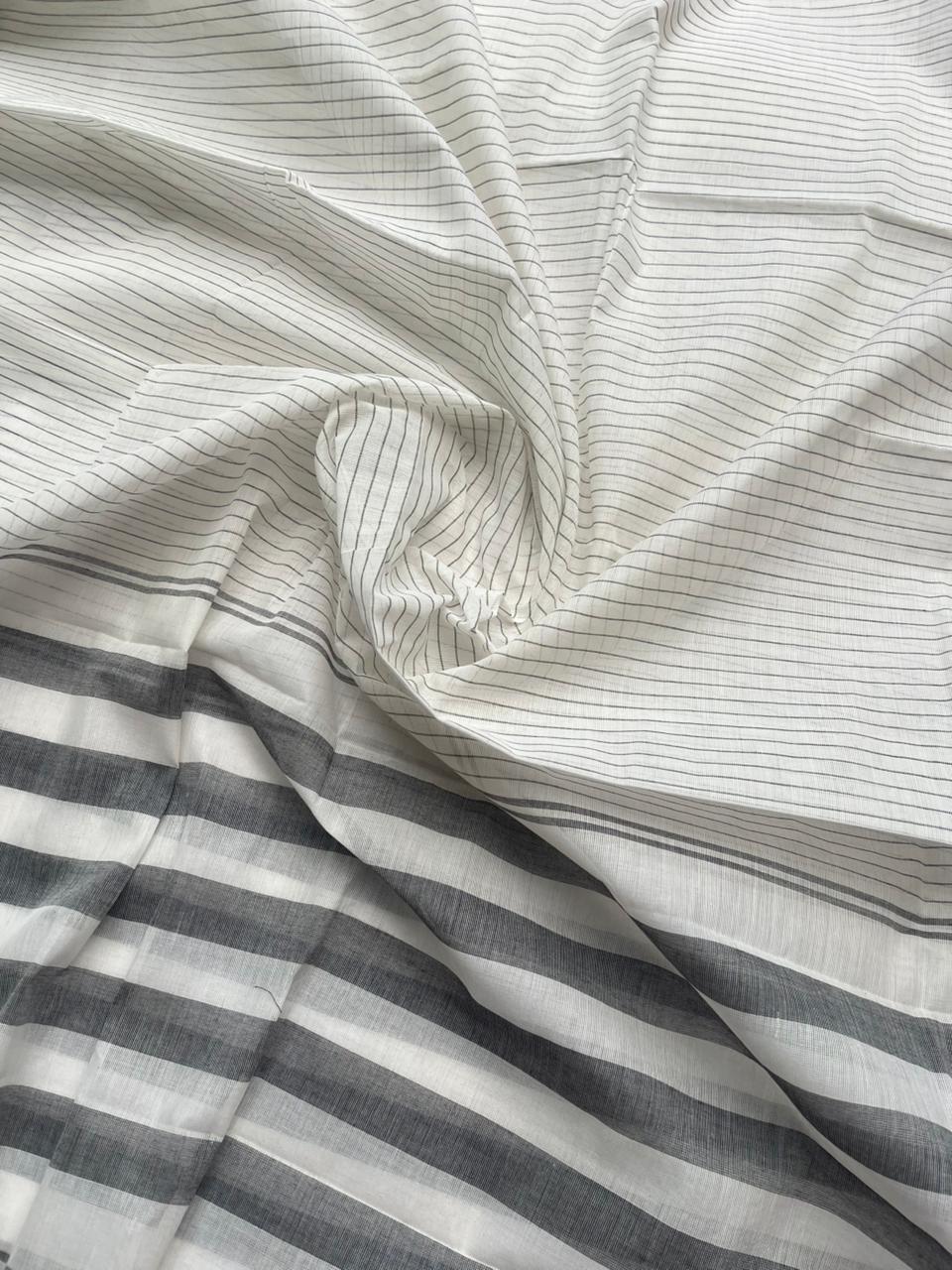 Pure Cotton Handloom Top & Dupatta Set | Half White Dress Material