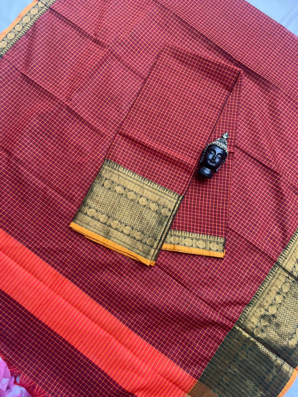 Pure Cotton Handloom Top & Dupatta Set | Maroon Dress Material
